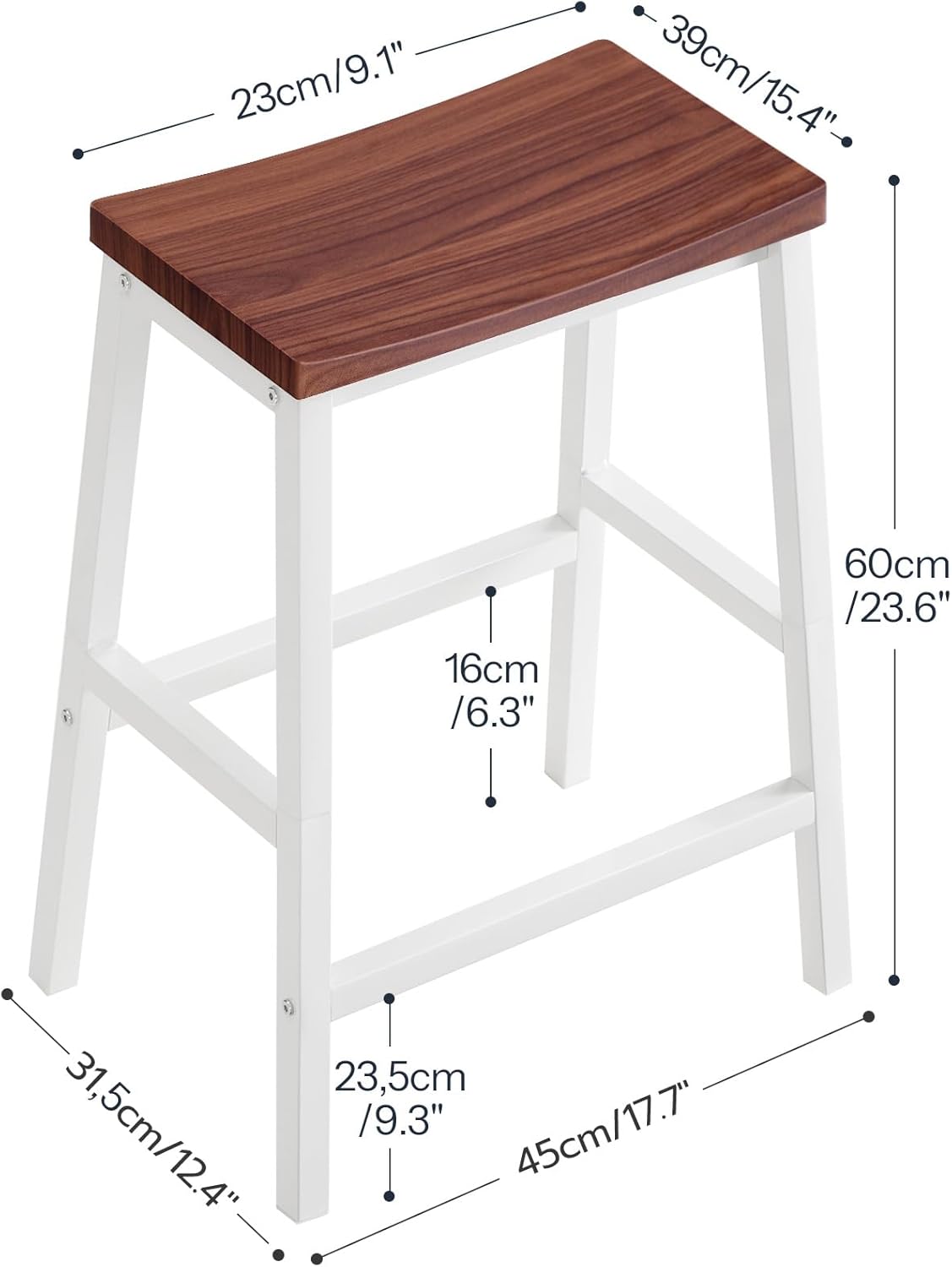 HOOBRO Bar Stools, Set of 2 Bar Chairs, 23.6 Inch Saddle Stools, Kitchen Counter Seat with Footrests, Industrial Barstools for Dining Room, Kitchen, Counter, Bar, Walnut and White HW02MD01