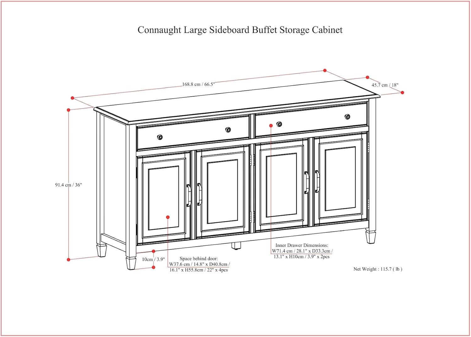 SIMPLIHOME Connaught SOLID WOOD 67 inch Wide Traditional Large Sideboard Buffet Storage Cabinet in Dark Chestnut Brown for the Living Room, Entryway and Family Room
