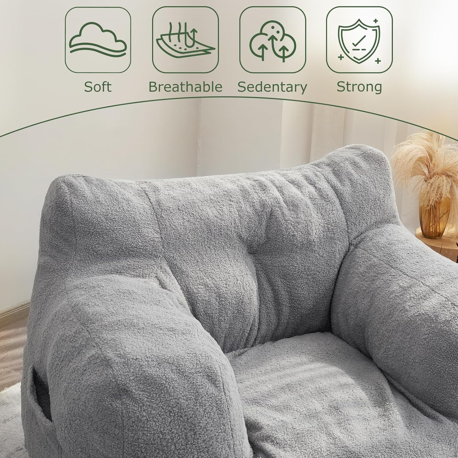- 【SKIN-FRIENDLY AND COMFORTABLE】The bean bag chair for adults is crafted from soft teddy fleece and filled with high-quality, lightweight, and fluffy foam blocks. This ensures ample support and an ultra-soft lounging experience, making you feel like you're wrapped in a soft cloud.
