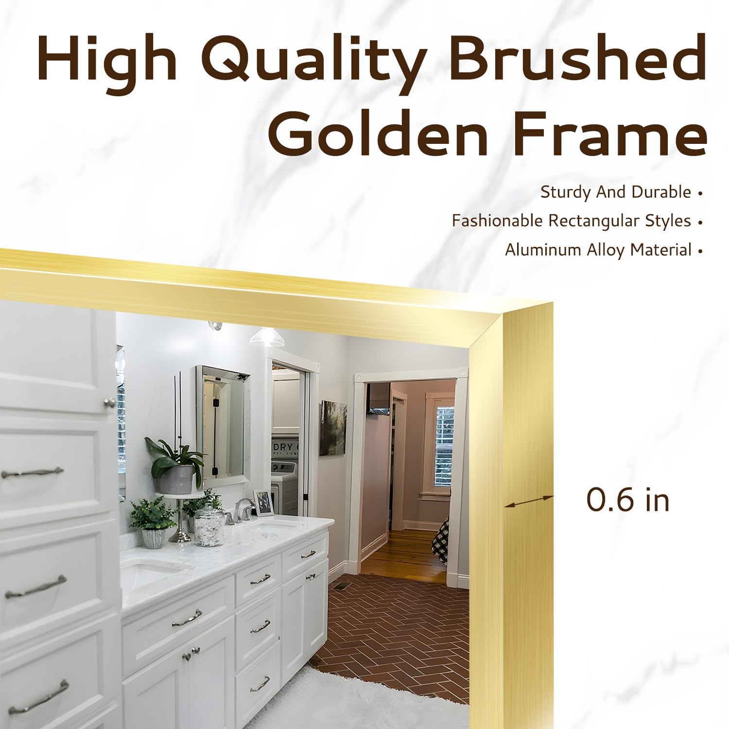Gold Bathroom Mirror 26"x38", Rectangle Vanity Mirror with Frosted Metal Frame, Tempered Glass Wall Mounted Mirrors, Rust-Resistant for Bathroom, Bedroom & Living Room Decor