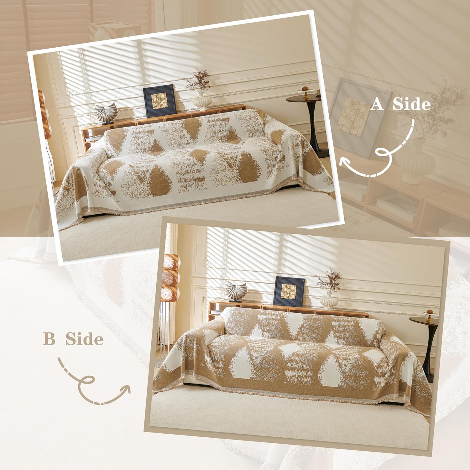 - Unique Design: Sofa cover with fashionable and simple rhombic geometric patterns, visually produce a sense of dynamics, make the boring room more charming,Furniture protector cover-light luxury and simplicity, can be used bed towel, couch cover, chair, sofa throw blank.