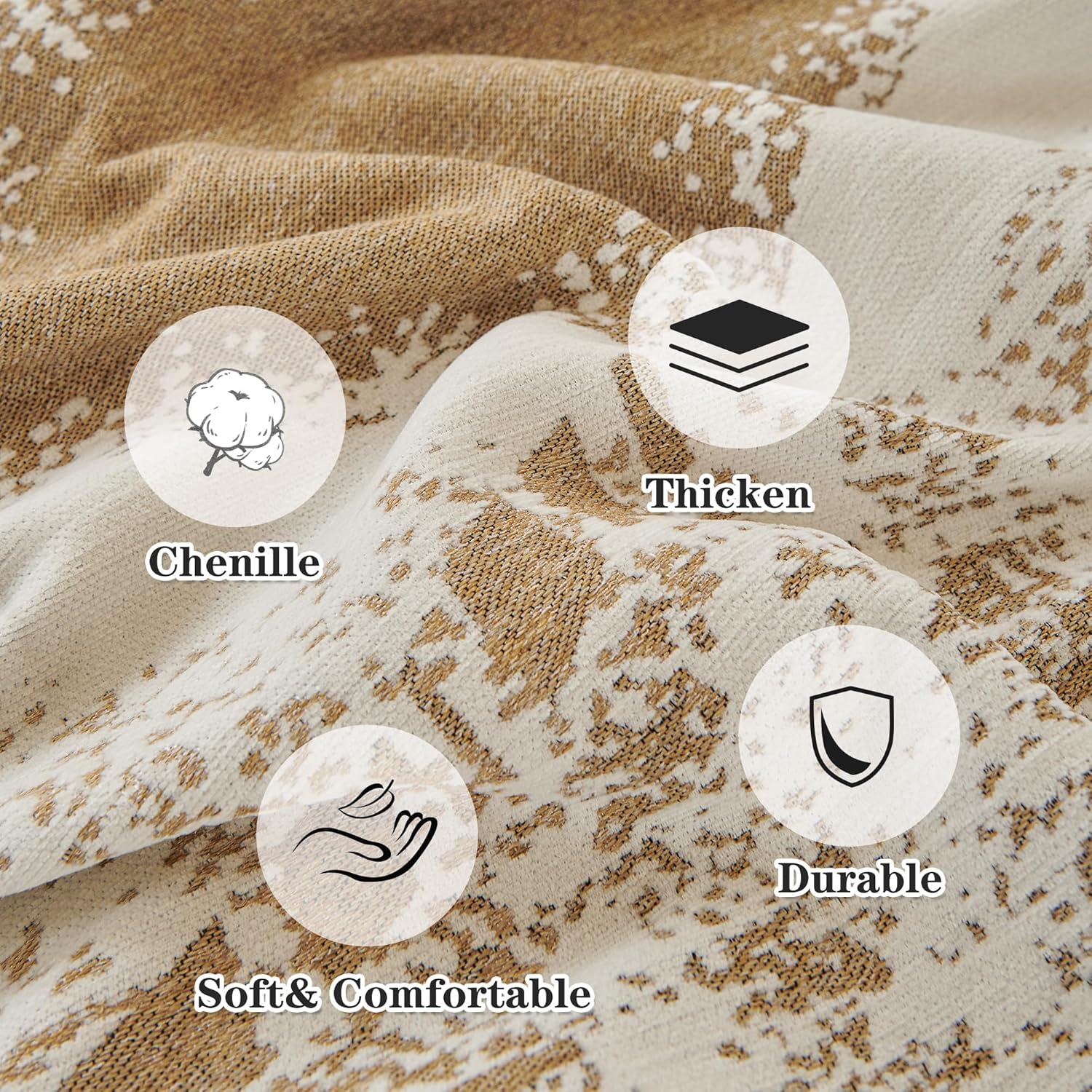 - High Quality: Couch throw cover furniture protector is made of thick chenille fabric, super soft and skin-friendly to the touch, tear-resistant, good drape, breathable, comfortable and durable. Suitable for all seasons and will not pilling or fading after washing.