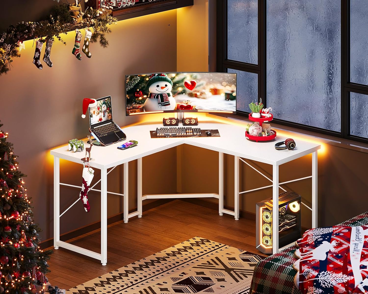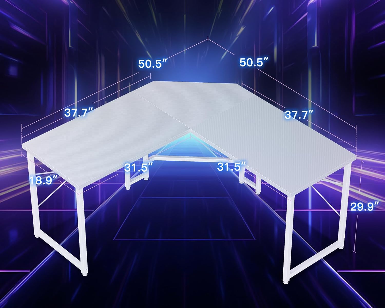 Casaottima L Shaped Gaming Desk, Corner Desk Gaming Table for Home Office, Computer Desk Sturdy Writing Workstation for Small Space, Easy to Assemble, 51 inch, Carbon Fiber Surface, White