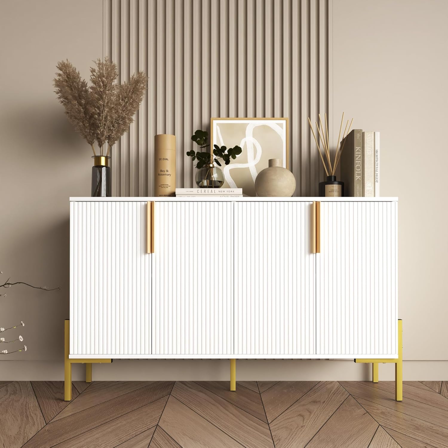 4 Doors Sideboard Buffet Cabinet with Adjustable Shelves,Modern Accent Sideboard with Golden Legs,Wide Storage Cabinet for Kitchen,Living Room,White