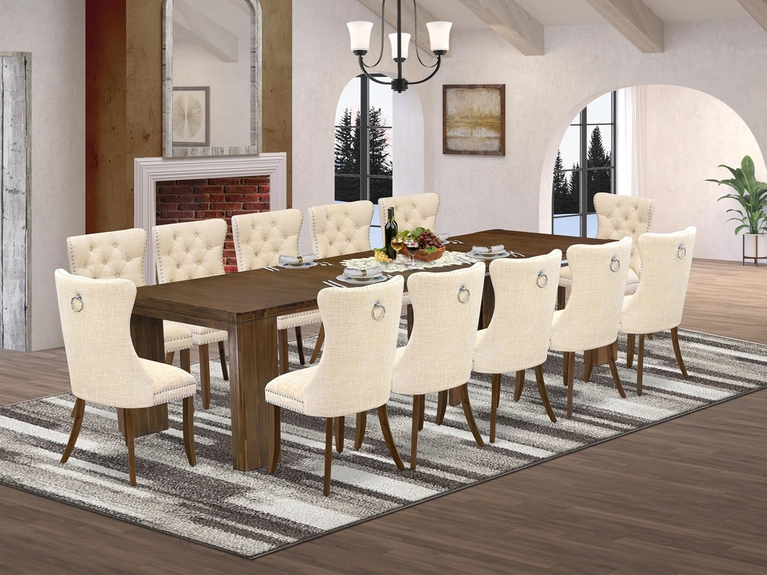 X12DA-008-32 - 13 Pieces Dining Room Set contains an Extendable Rectangle Kitchen Table and 12 Polyester Fabric Dining Chairs, 39x120 Inch, Antique Walnut