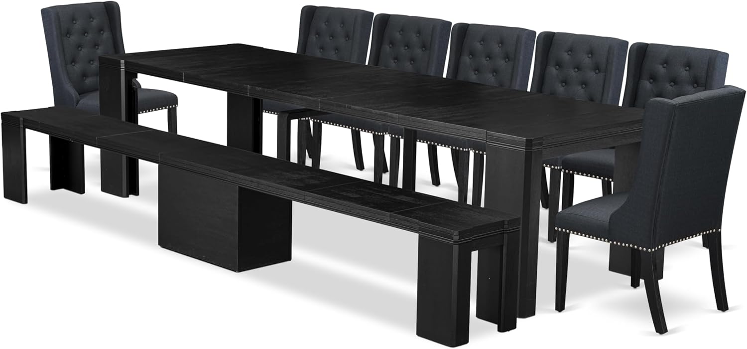 - DINING ROOM SET FINISH: This dining table set features a chic wire-brushed black dining table sporting a modern design, and it's partnered with an extendable bench beautifully finished in a matching wire-brushed black. The dining chairs, impeccably upholstered in Black Linen Fabric and expertly designed with precisely coordinated black legs, emanate an air of professionalism that contributes to the enhanced overall sophistication of your dining area.