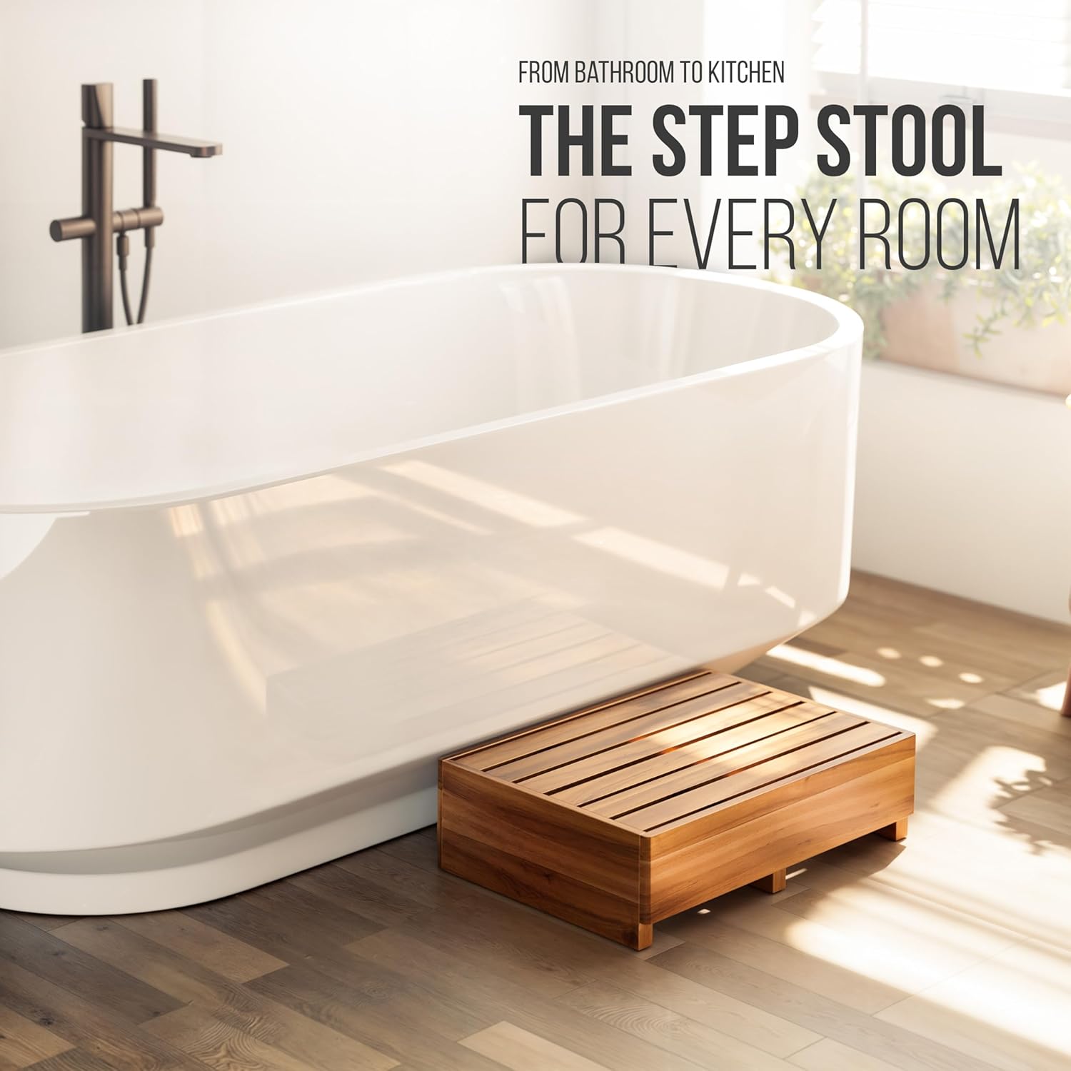 - Ready to Use – No Assembly Required: This acacia wood step stool arrives fully assembled for immediate use. Measuring 16" D × 25" W × 6.5" H, it's a convenient solution for bedrooms, bathrooms, and more—no tools or setup needed.