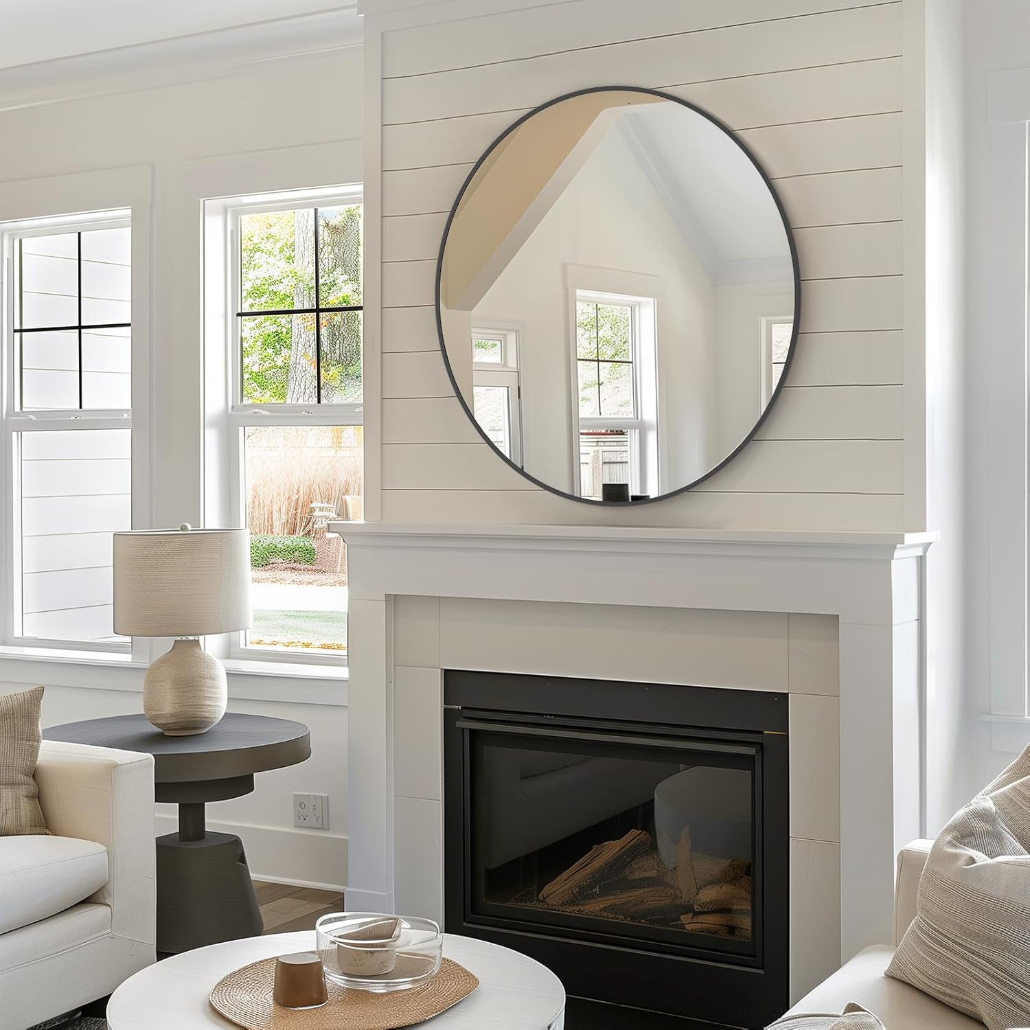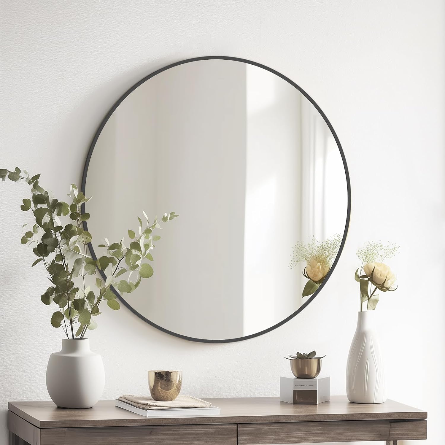 - 【MODERN & LUXURY】Simple and modern design, the black-colored frame round mirror feel elegant. Suitable for any room, Bathroom, bedroom, living room, corridor, entrance and more.