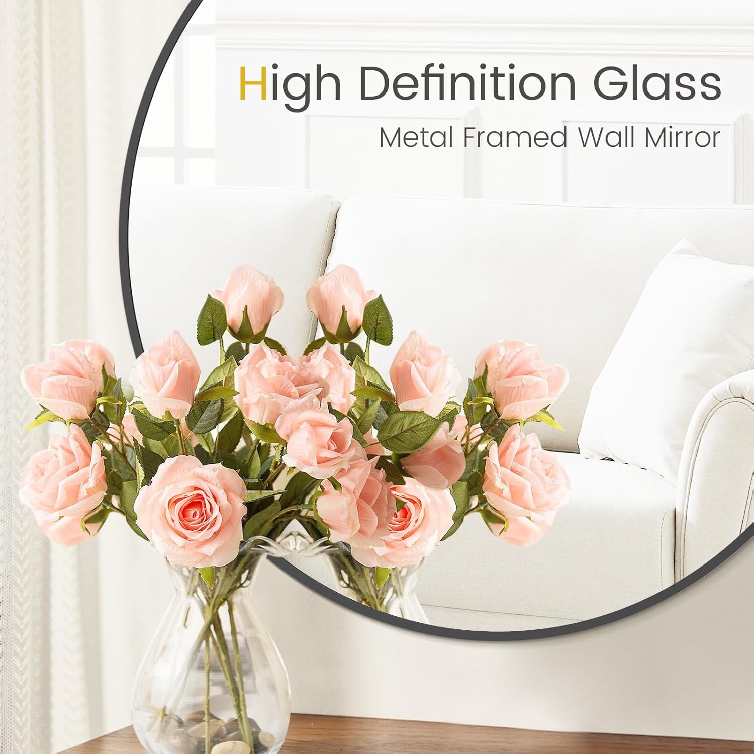 - 【HIGH-QUALITY METAL FRAME】28 inch round mirror is delicately surrounded by a high quality metal frame. The Black metal frame with the Moisture-proof PVC back panel perfectly combines sturdiness, sophisticated touch, and durability.
