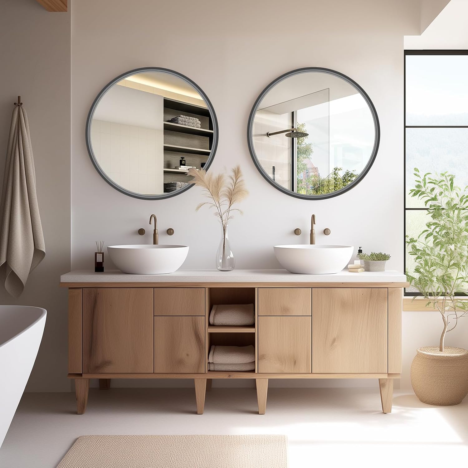 - 【PERFECT SIZE】This 24'' round mirror with 1.57’’ depth frame and classic black finish accents any room perfectly, Suitable for bathroom, bedroom, living room, corridor, entrance and more.