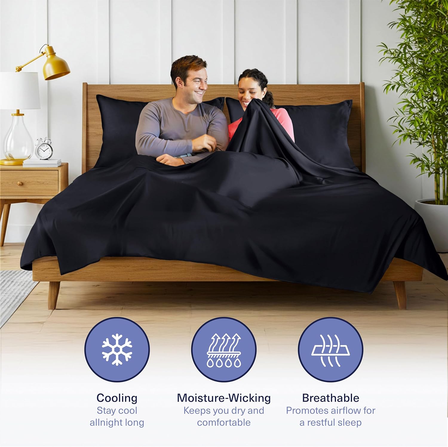 - 100% Viscose from Bamboo Bed Sheets: Crafted from 100% premium Viscose from Bamboo with a luxuriously soft sateen weave, our light, breathable, Viscose Bamboo cooling sheets naturally absorb heat and moisture, keeping you comfortable all night long.