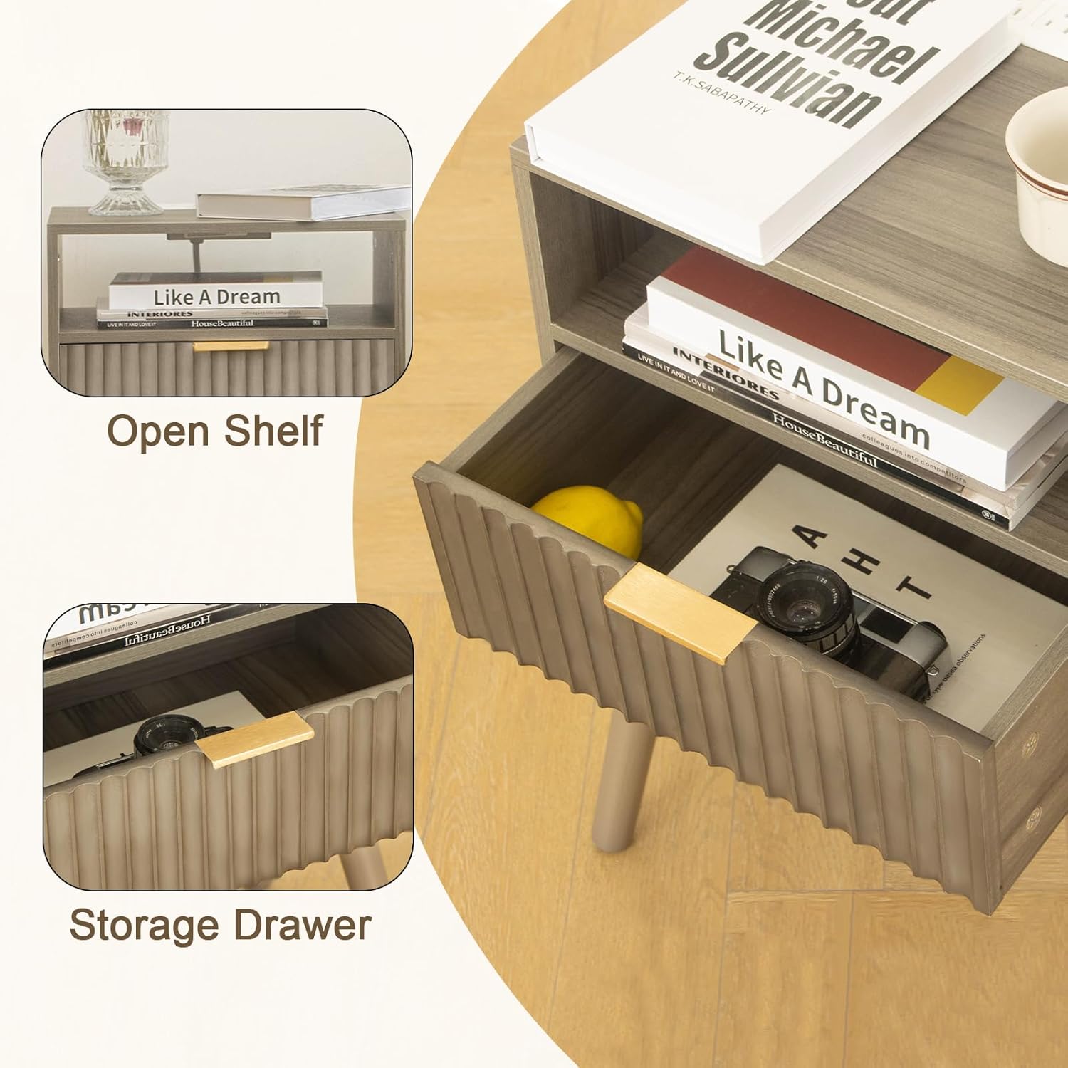 - Fluted Appearance: This bedside table embodies the mid-century modern style, with its wave panel drawer design creating a visually dynamic effect. The golden metal handle adds a touch of sophistication to its clean aesthetic, making this nightstand a stylish and artful addition to any home