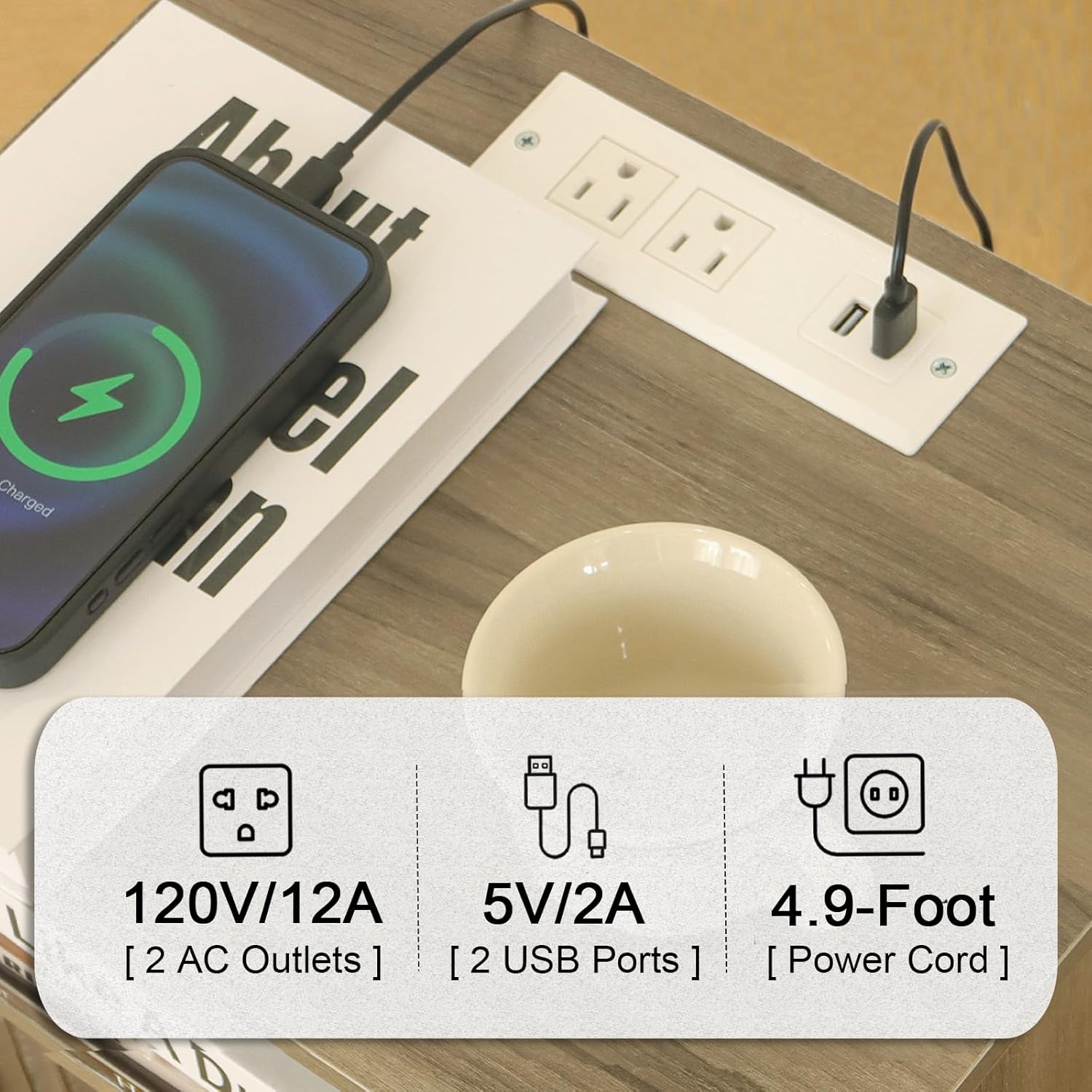 - Nightstand with Charging Station: The Nightstand features two AC outlets and two USB ports, enabling convenient charging of multiple devices at bedtime. Furthermore, it includes a 4.9ft power cord, providing flexibility in placement without any concerns about connecting to a power source