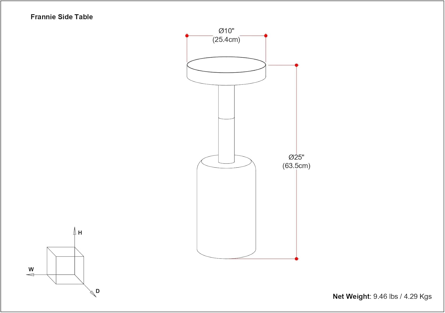 - Product Dimensions : 10"D x 10"W x 25"H