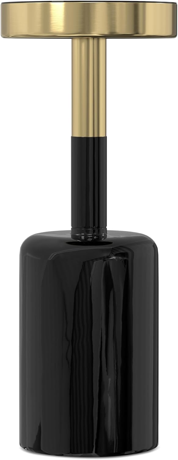 - Features a two-tone, powder-coated metal base with a Gold electroplated finish and high-gloss Black enamel paint, plus a Black Tempered-Glass tabletop.