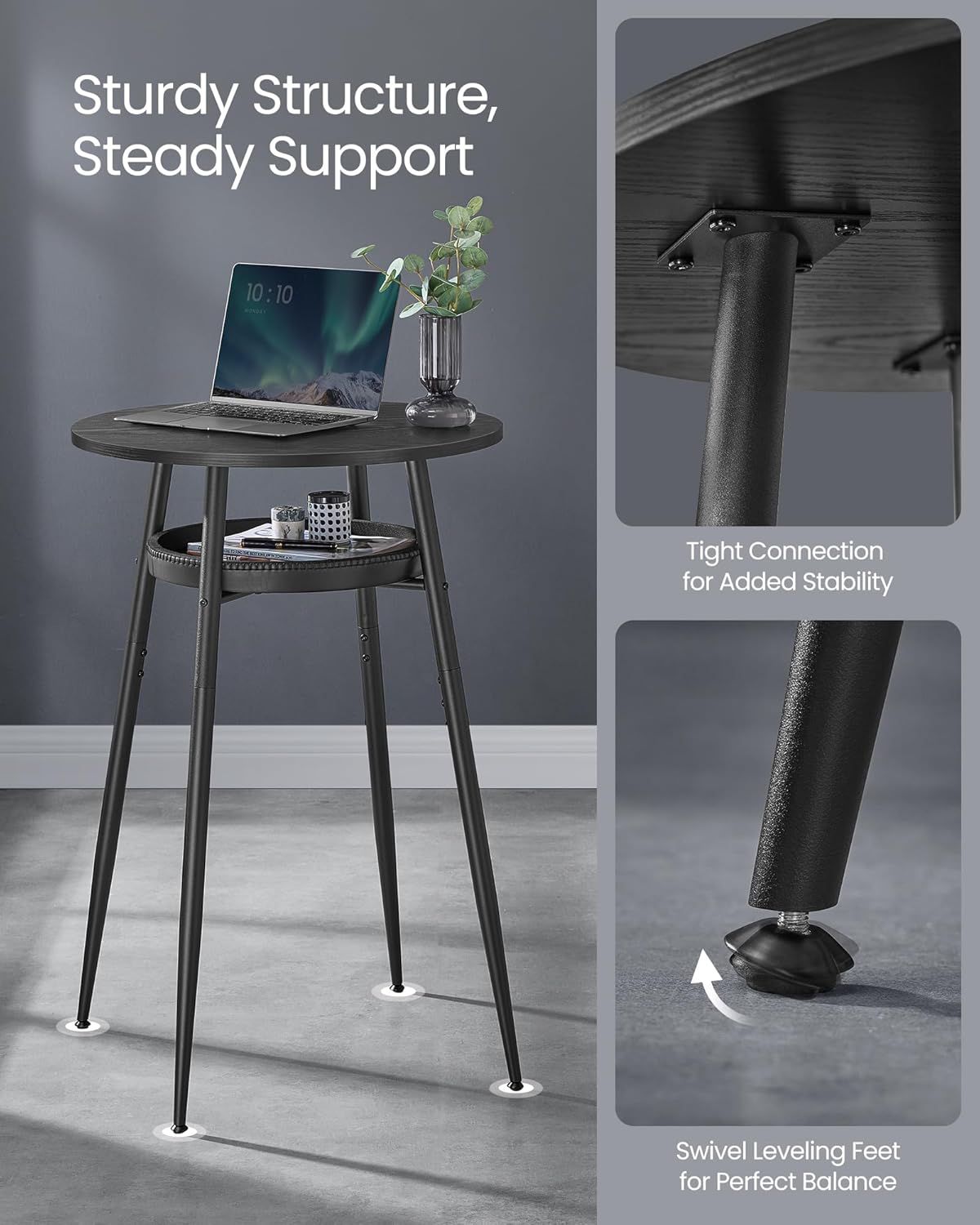- 【HANDY STORAGE BELOW】Keep your surface tidy with our cleverly designed storage tray beneath the tabletop. Measuring 15.7" in diameter and 1.1" deep, this pub table is perfect for storing headphones, books, pens, and more