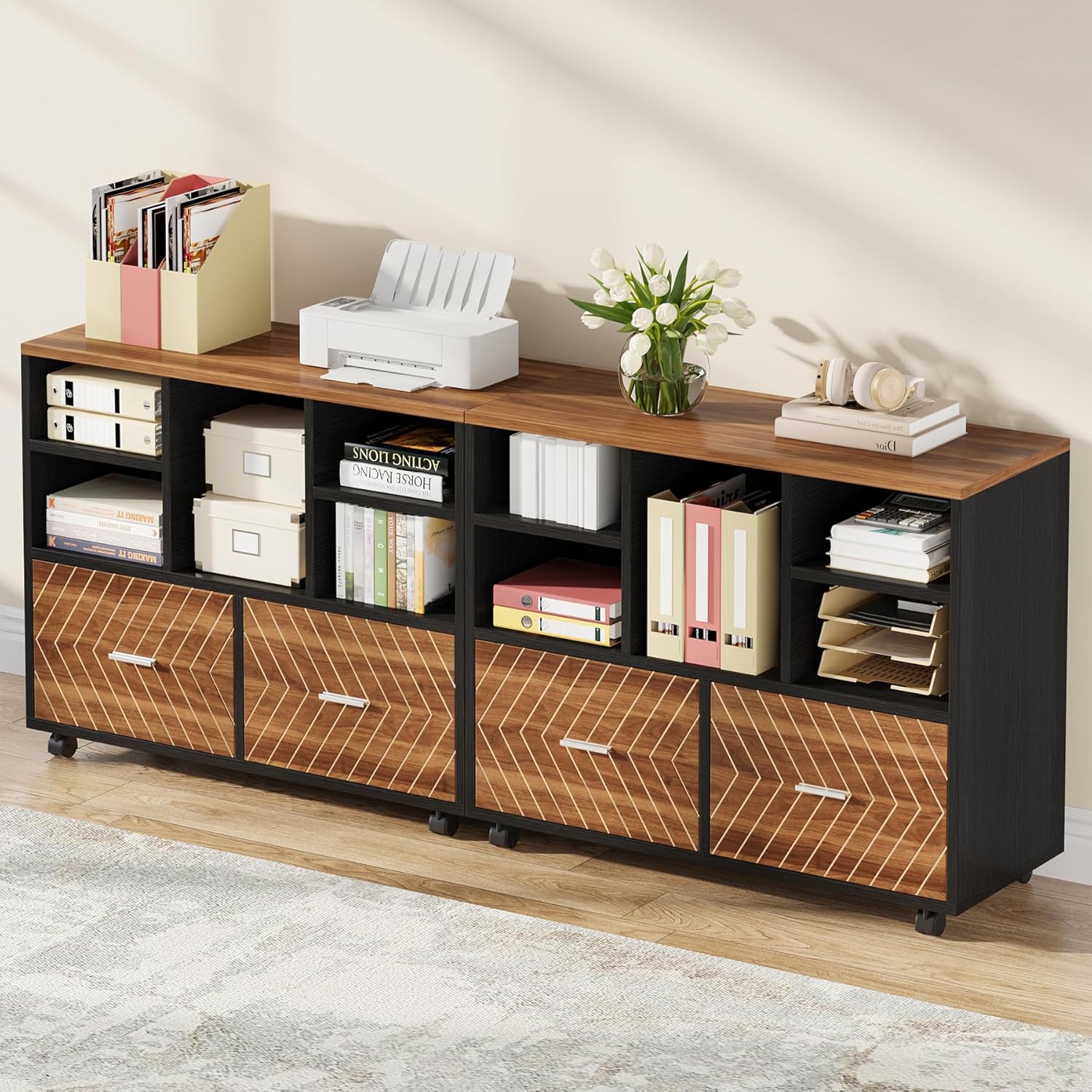 - 【Ample Storage Space】 This 39.4-inch file cabinet set offers excellent storage options to keep your office well-organized. It comes with 2 drawers, perfect for hanging letter-sized files, and 5 open shelves to display your essentials or decorations.
