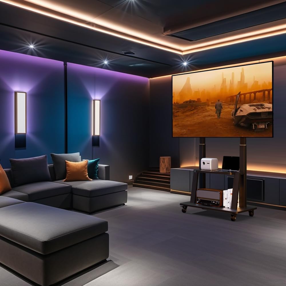 - Movable & Lockable: Our flexible mobile TV cart have four heavy-duty silent casters. It can be easily moved with less noise on different surface like carpets, tiles, wooden floors, grass. With effortless mobility you can enjoy watching TV anywhere. All wheels are easy to locked to secure position and ensure safety. Wheels with rubber treads protect floors/surface from scratches.