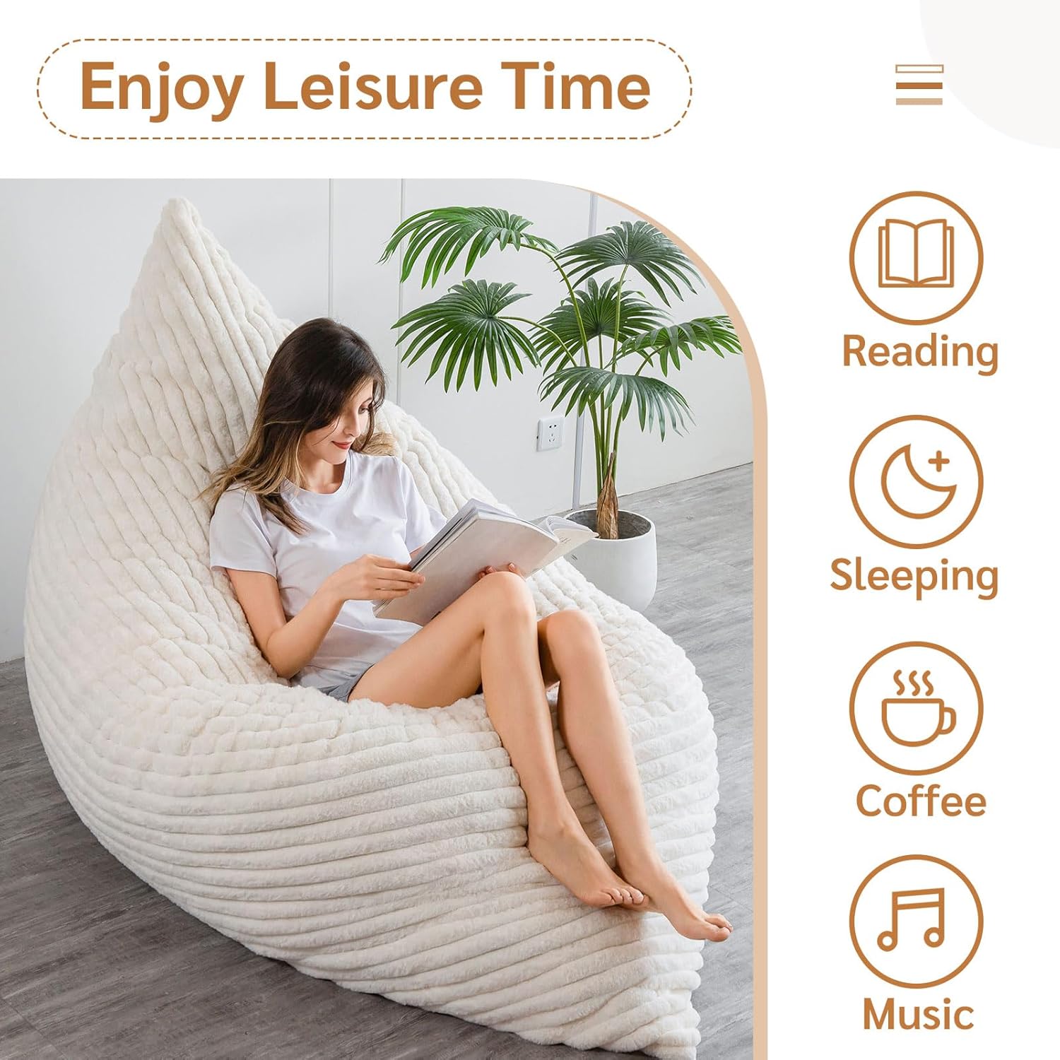 - ăComfortable FabricăMade with skin-friendly faux fur fabric, BYBYME bean bag to bed provides a luxurious sitting or reclining experience, outperforming traditional bean bags. You could sit in this fuzzy bean bags to enjoy your relaxing time.