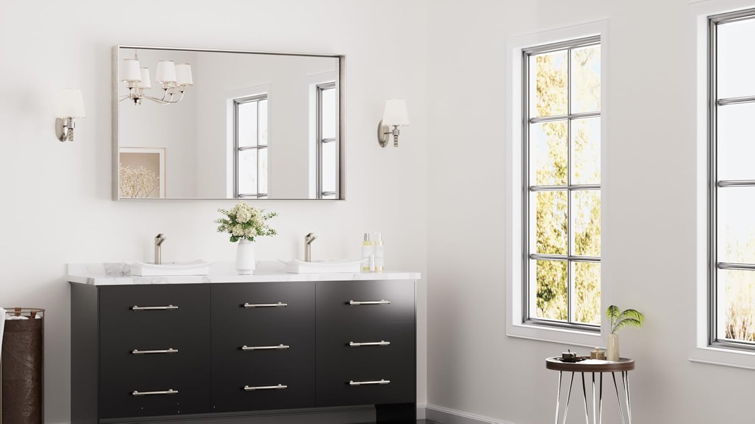 - 【Secure & Easy Installation】The sturdy silver wall mirror designed with 4 built-in slots on the back for hanging horizontally or vertically. Super easy to install with French cleat brackets. Hardware Included. We have designed a sturdy 4-layer packaging for mirrors, so you don't have to worry about receiving a broken mirror.