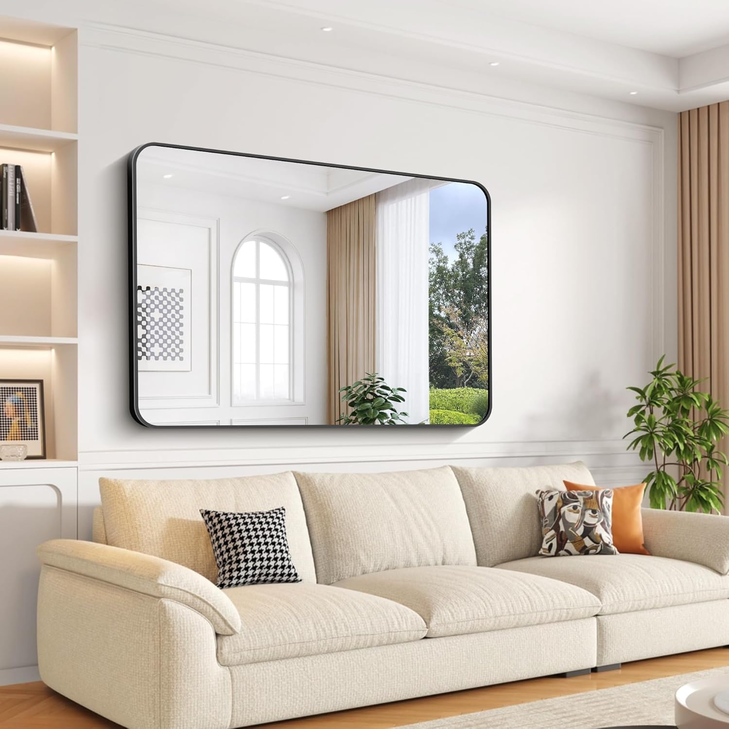 - LARGE BLACK BATHROOM MIRROR: This 36" x 55" rectangle bathroom wall mirror is large enough to give you true and reliable images at multiple angles and distances. Suitable for various home scenarios, such as bathroom, cloakroom, dressing room, living room, entryway.