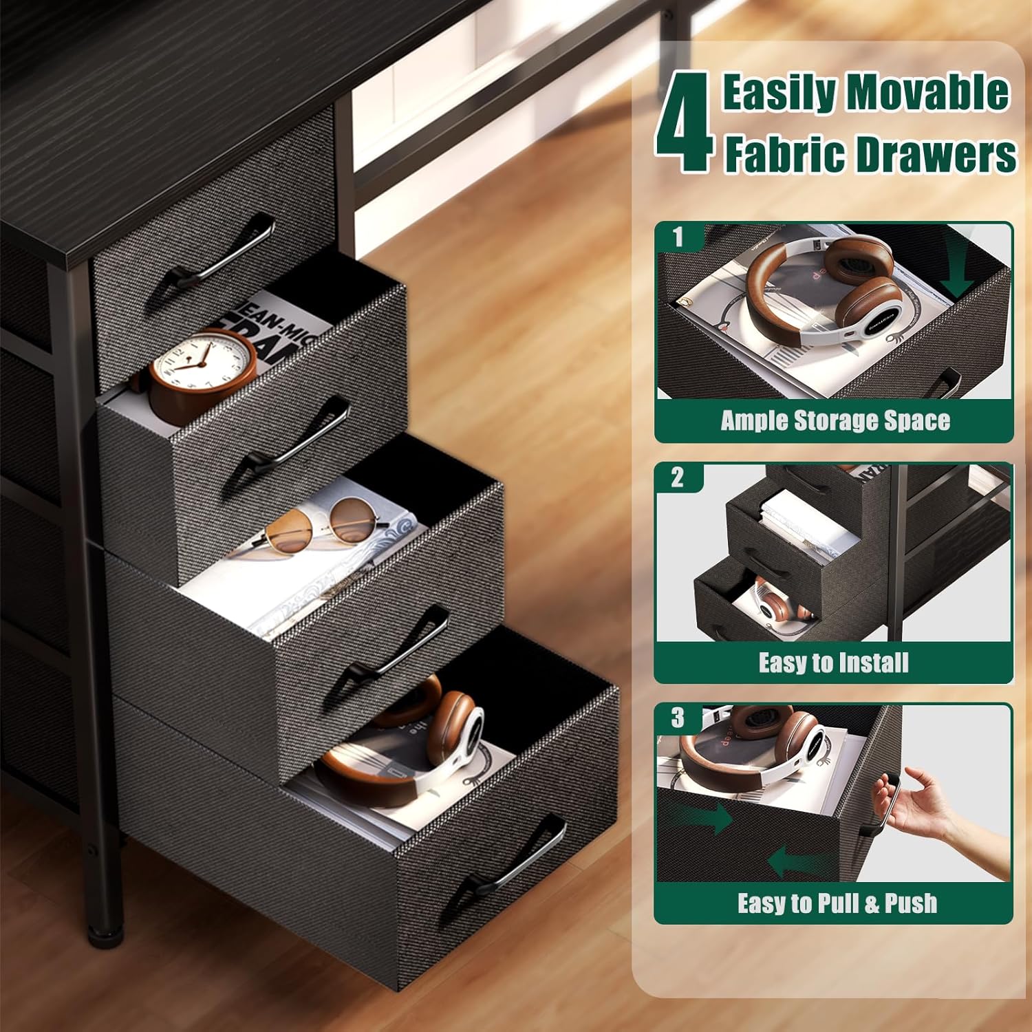 - 4 Upgraded Fabric Drawers: Drawers made of high-quality non-woven fabric that is lightweight and breathable.The 4 drawers can be switched around and provides plenty of storage space.