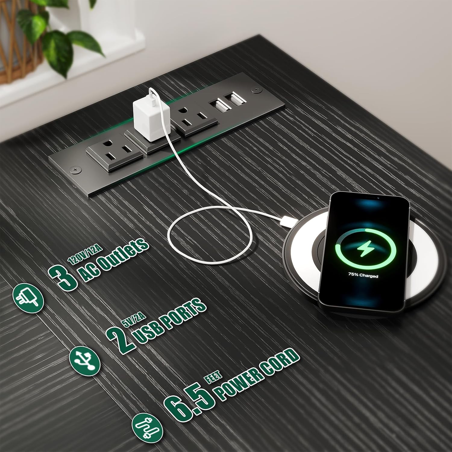 - Desk with Charging Station: The Long computer desk equipped with 3 power outlets and 2 USB charging ports for your electronic devices, makes it easy and convenient to charge your smartphone, gaming device or Bluetooth device.