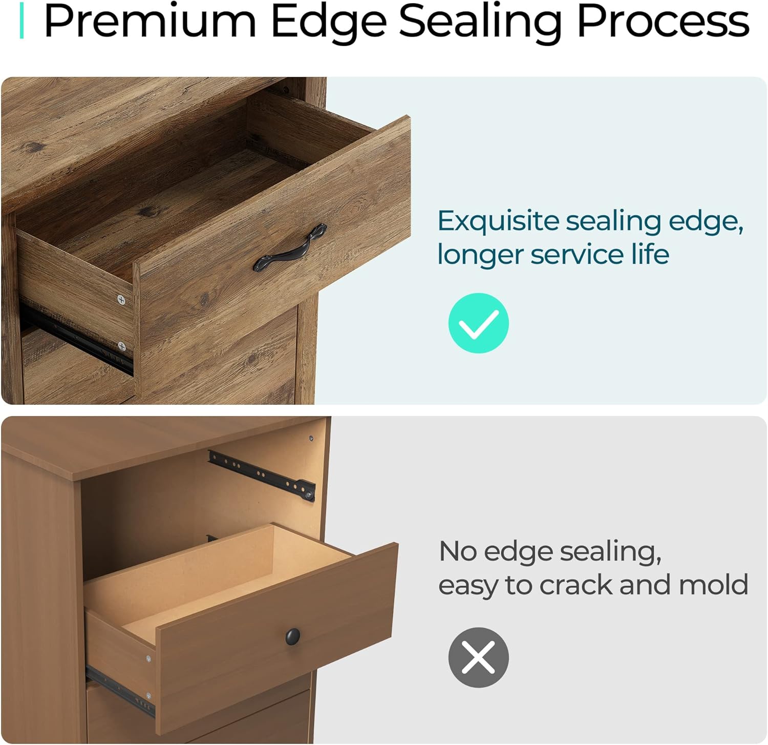 - Durable Craftsmanship: Our wood dresser stands out with full edge-sealing craftsmanship, unlike standard surface stickers. This method makes the panels smoother, more durable, and less likely to break, ensuring long-lasting use and a high-quality feel.