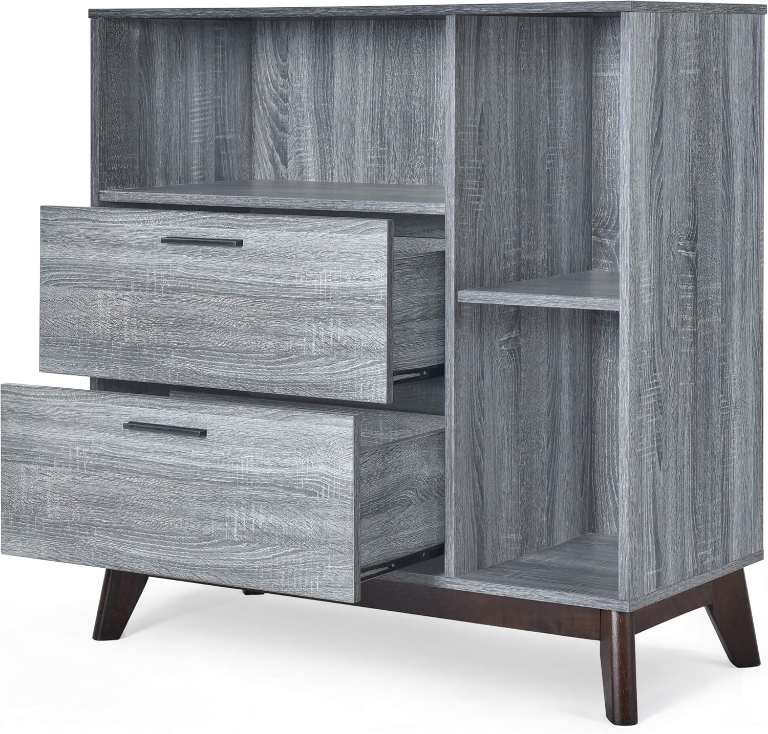 Merax Sideboard Buffet Accent Storage Cabinet with Two Drawers for Living Room, Entryway, Kitchen or Hallway, Grey