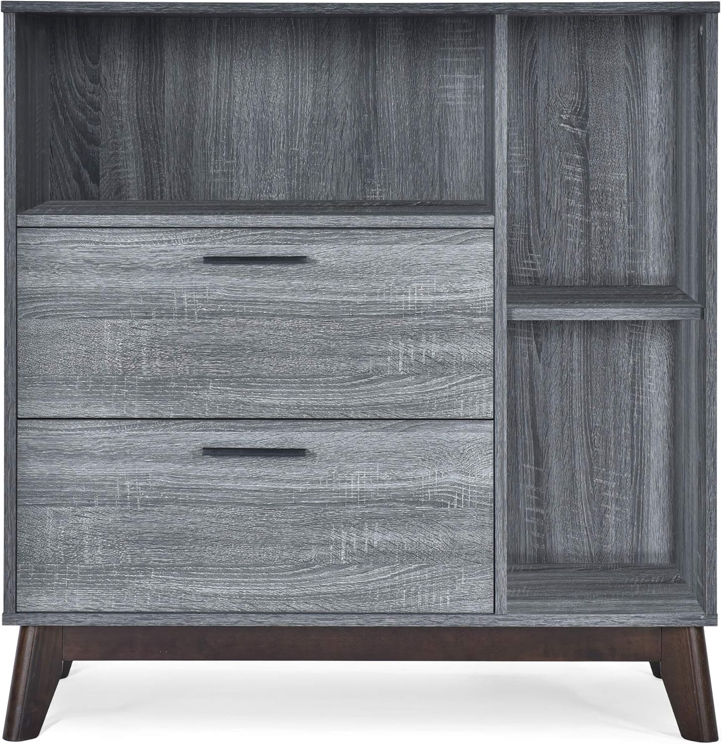 - MID-CENTURY DESIGN: Blending together iconic splayed legs with a stunning wood finish frame, our cabinet offers a mid-century look to your lounge space. With its clean lines and understated look, this set uses new materials to reimagine a traditional design.