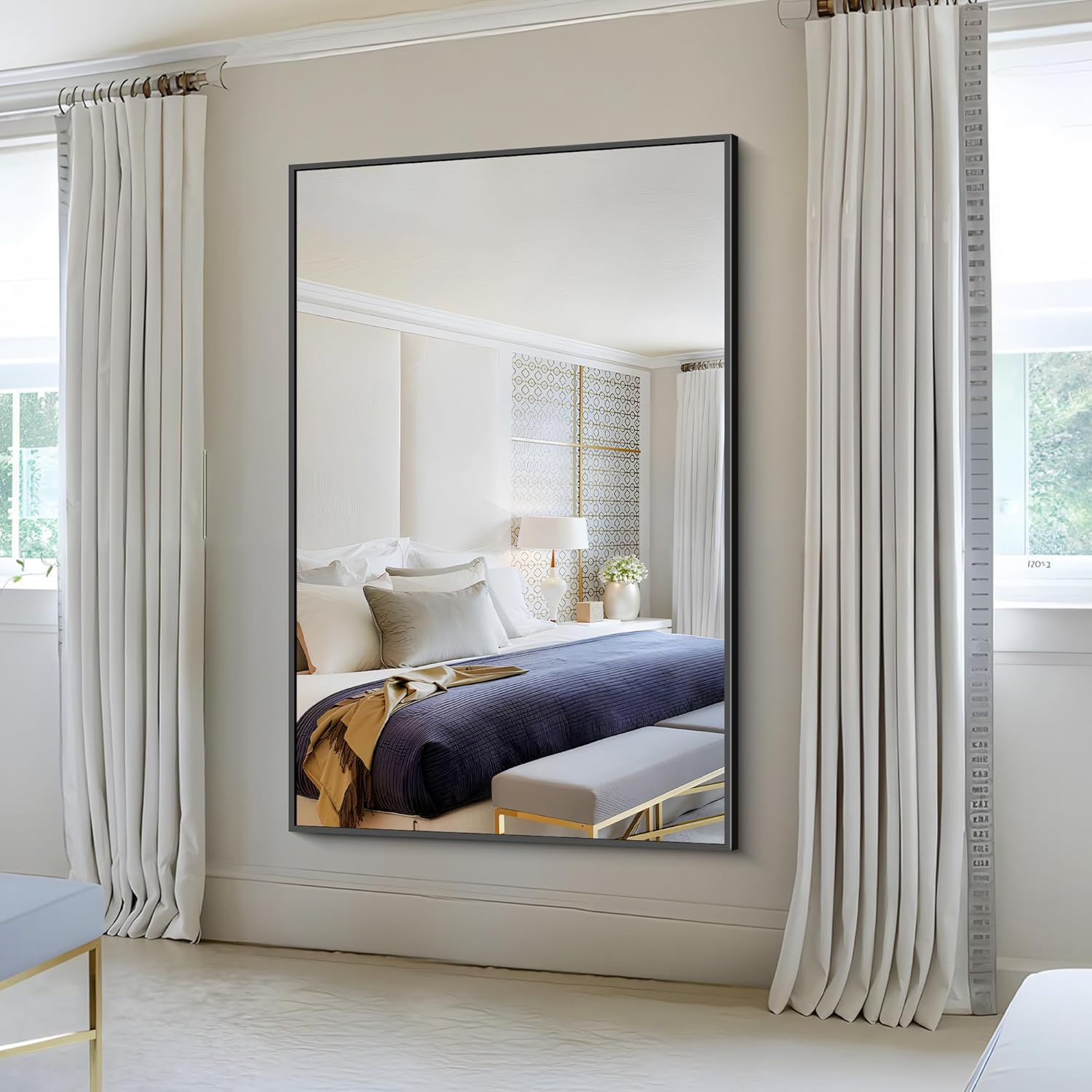KOCUUY 60x40 Inch Large Black Wall Mounted Mirror,Aluminum Framed Decorative Rectangular Bathroom Mirror for Wall Over Sink,Vanity Mirror for Bedroom Living Room Bathroom,Functional Oversized Mirror