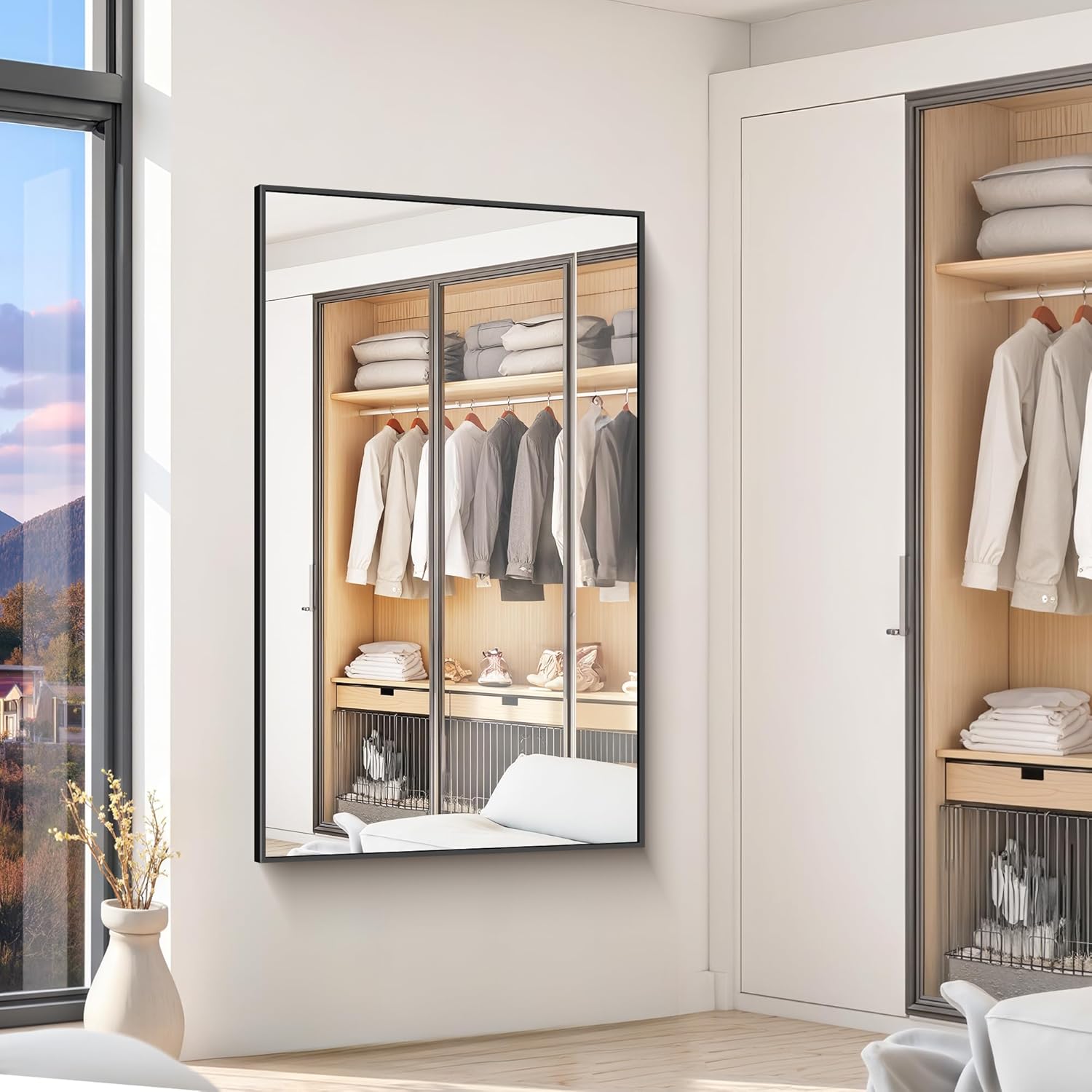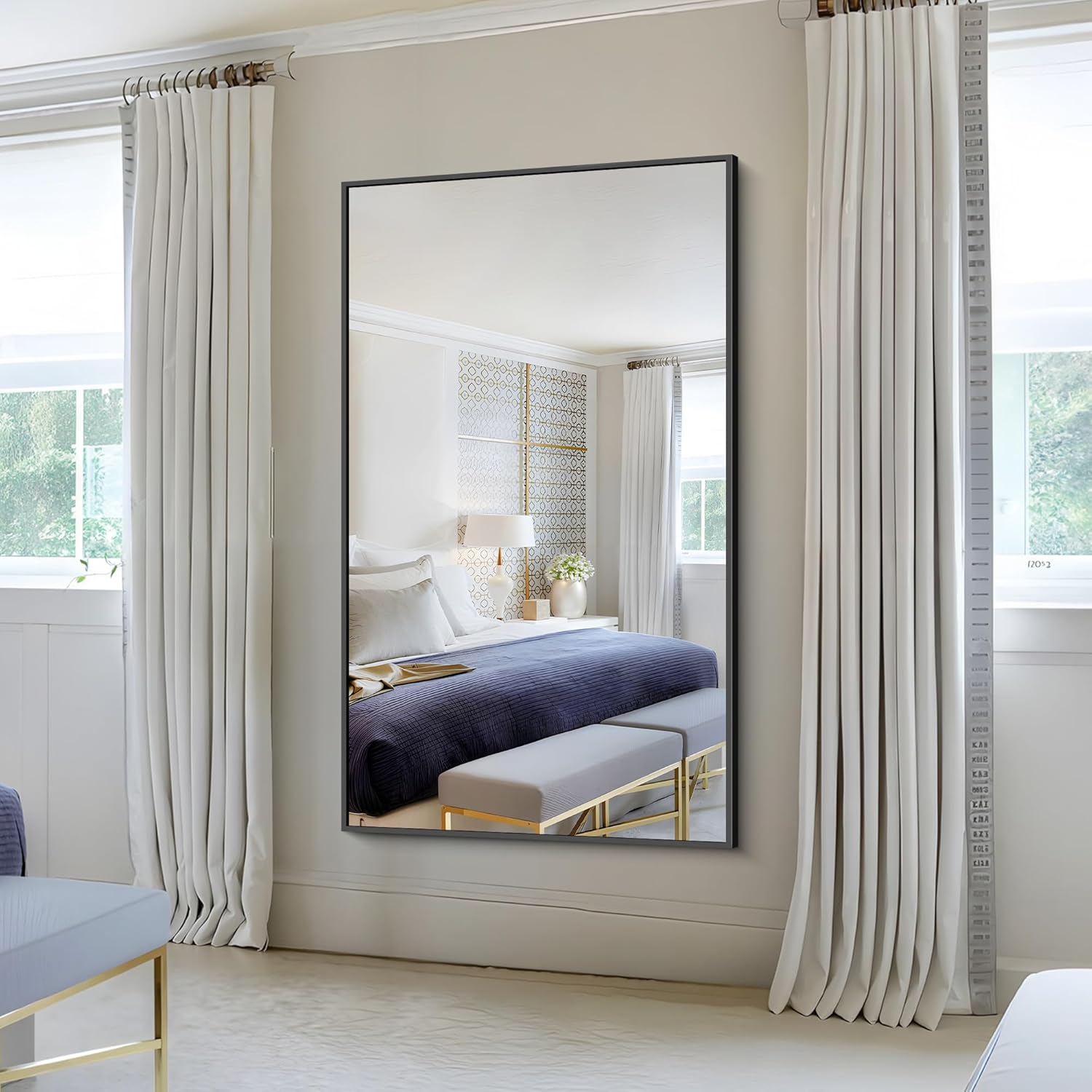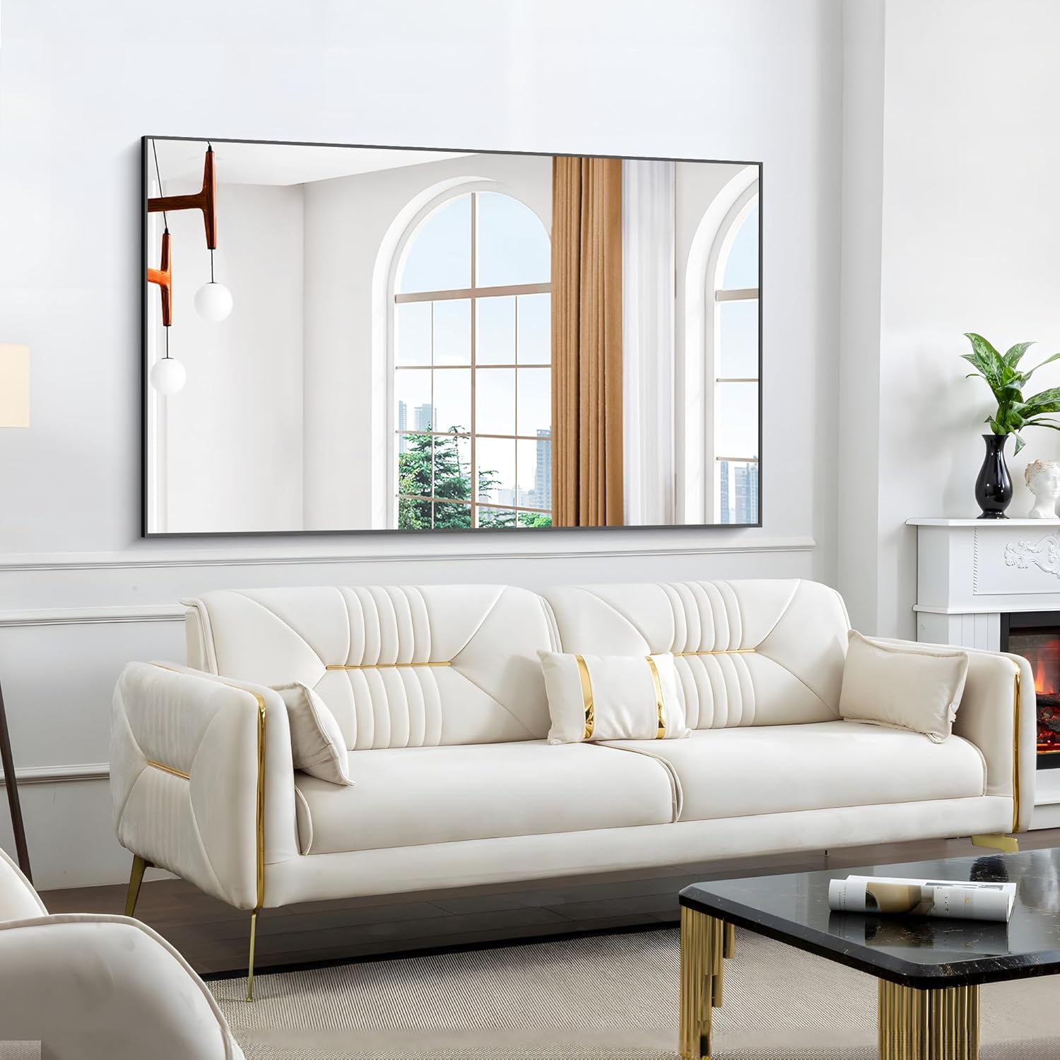 KOCUUY 60x36 Inch Large Black Wall Mounted Mirror,Aluminum Framed Decorative Rectangular Bathroom Mirror for Wall Over Sink,Vanity Mirror for Bedroom Living Room Bathroom,Functional Oversized Mirror
