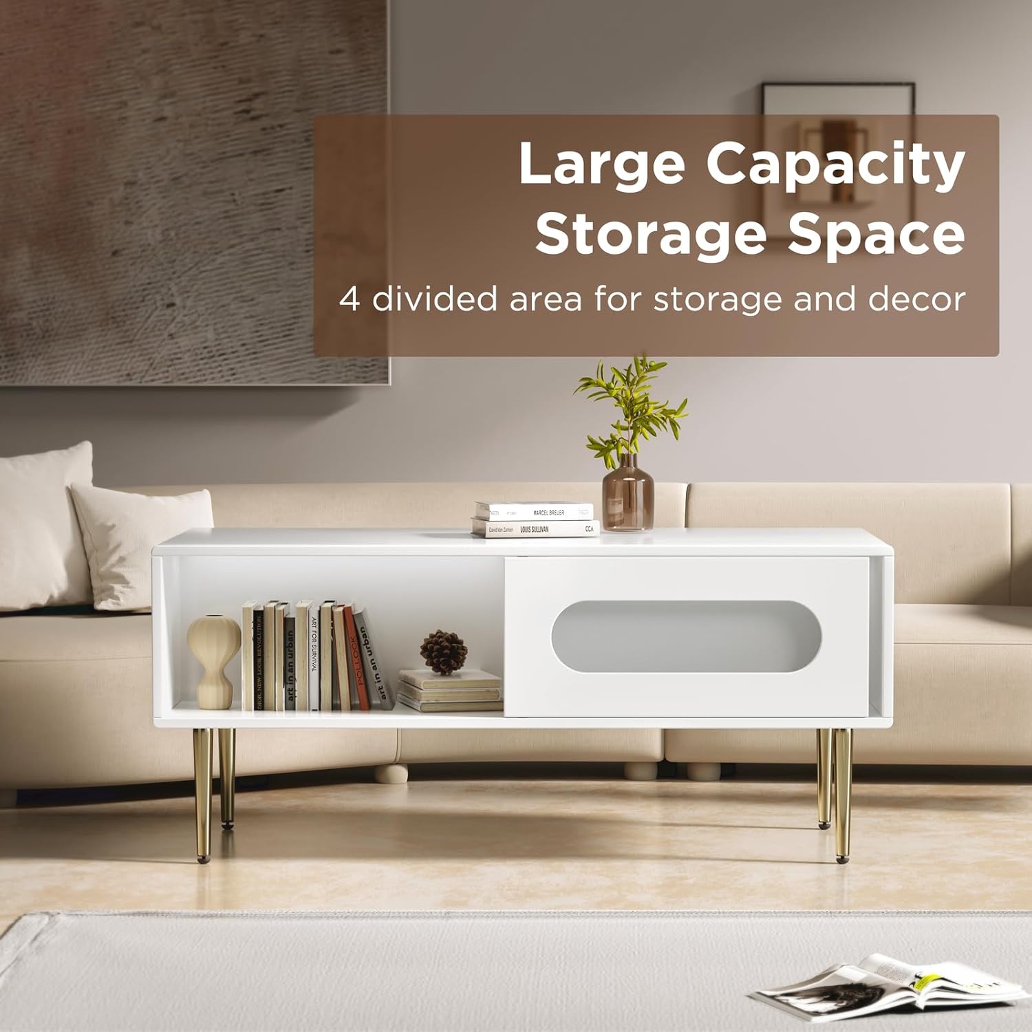 - Stylish Storage Solution - Combining form and function, our living room tables have 4 divided areas with sliding doors to store and showcase items like books, magazines, and remote controls.