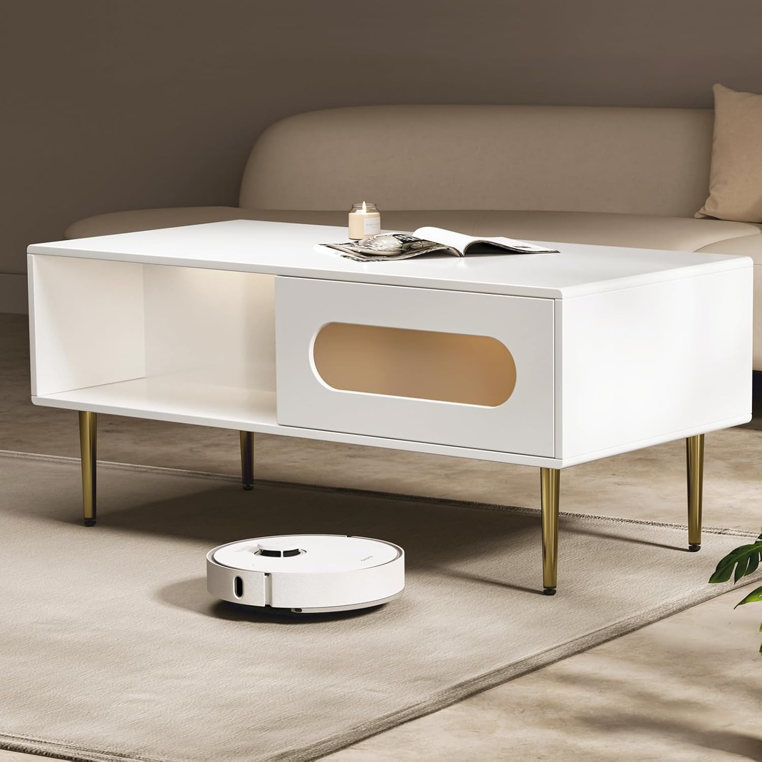 - Safe & Sturdy Build - Rounded edges ensure safety, while the metal legs keep the living room coffee table stable on any surface and protect your floors from scratches, offering peace of mind.