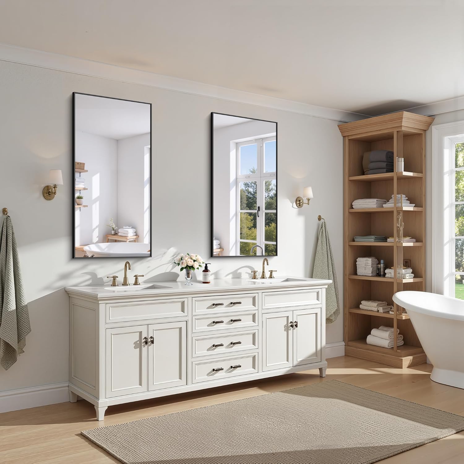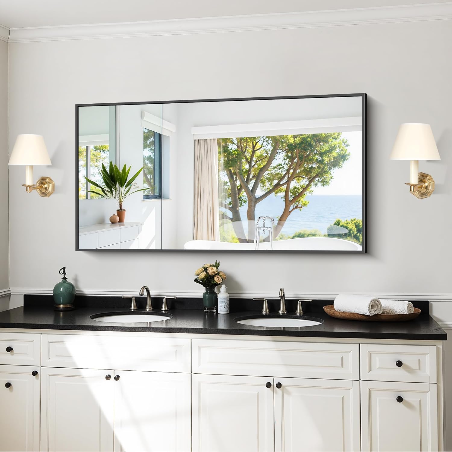 - Modern Design:KOCUUY 24x48 black vanity mirror is with innovative design which gives the wall mirror a more fashion feel. With a classic square corner, the wall mounted mirror allows for creativity and functionality in bathroom, bedroom, entryway and anywhere else. Let your living space be an expression of your personal style, not limited to modern or contemporary, farmhouse or industrial