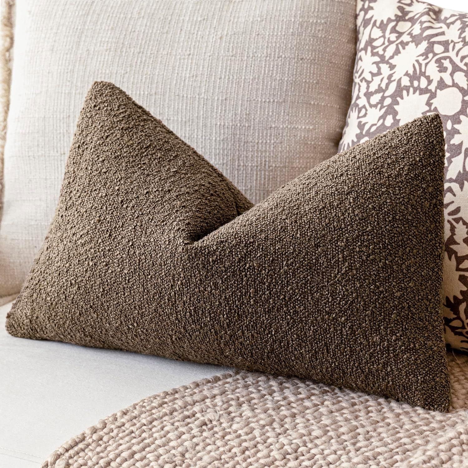 Foindtower Pack of 2 Textured Boucle Throw Pillow Covers Accent Solid Decorative Lumbar Pillow Cases Cozy Soft Couch Cushion Case for Chair Sofa Bedroom Living Room Home Decor 12x20 Inch Light Brown