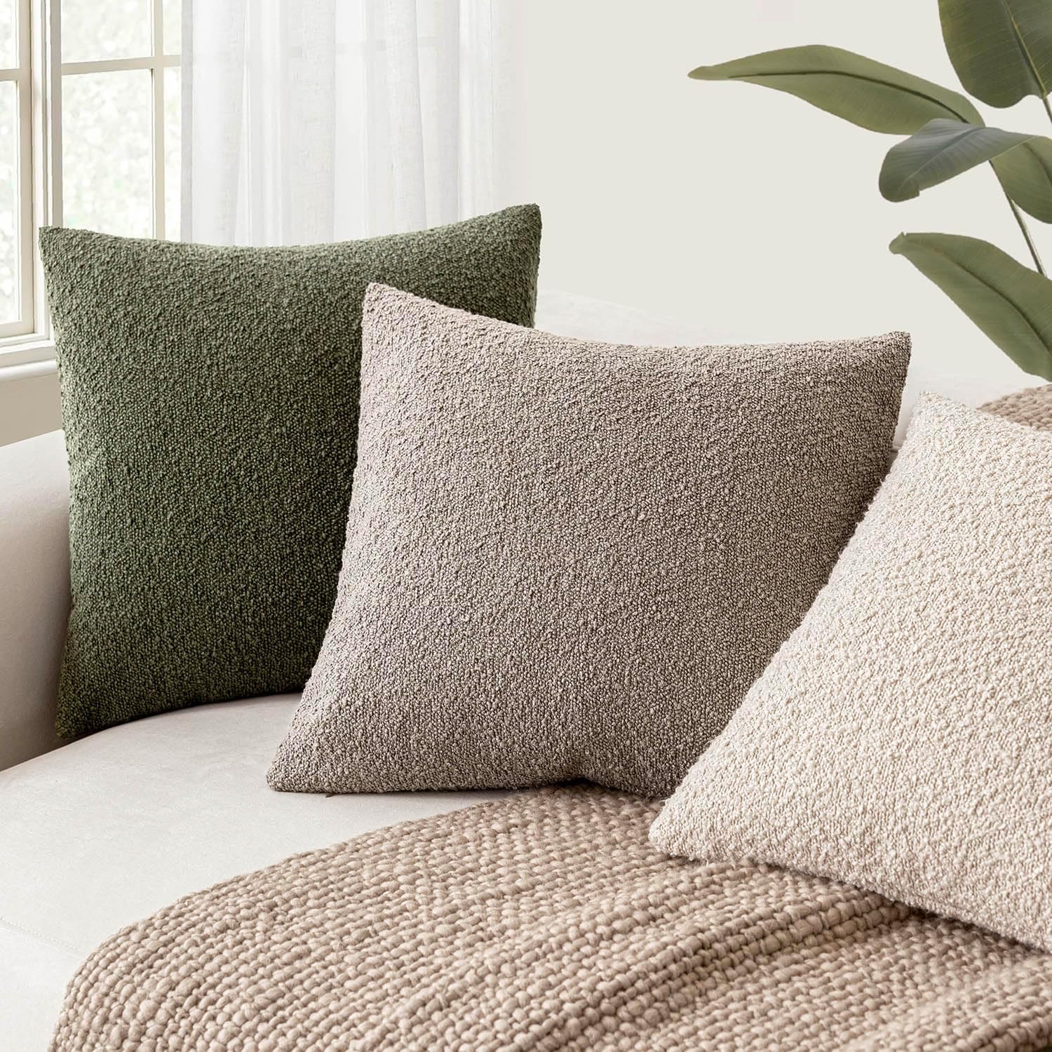 Foindtower Set of 2, Decorative Textured Boucle Throw Pillow Covers Accent Solid Pillow Cases Neutral Soft Cozy Couch Cushion Case for Chair Sofa Bedroom Living Room Home Decor 26x26 Inch Light Taupe