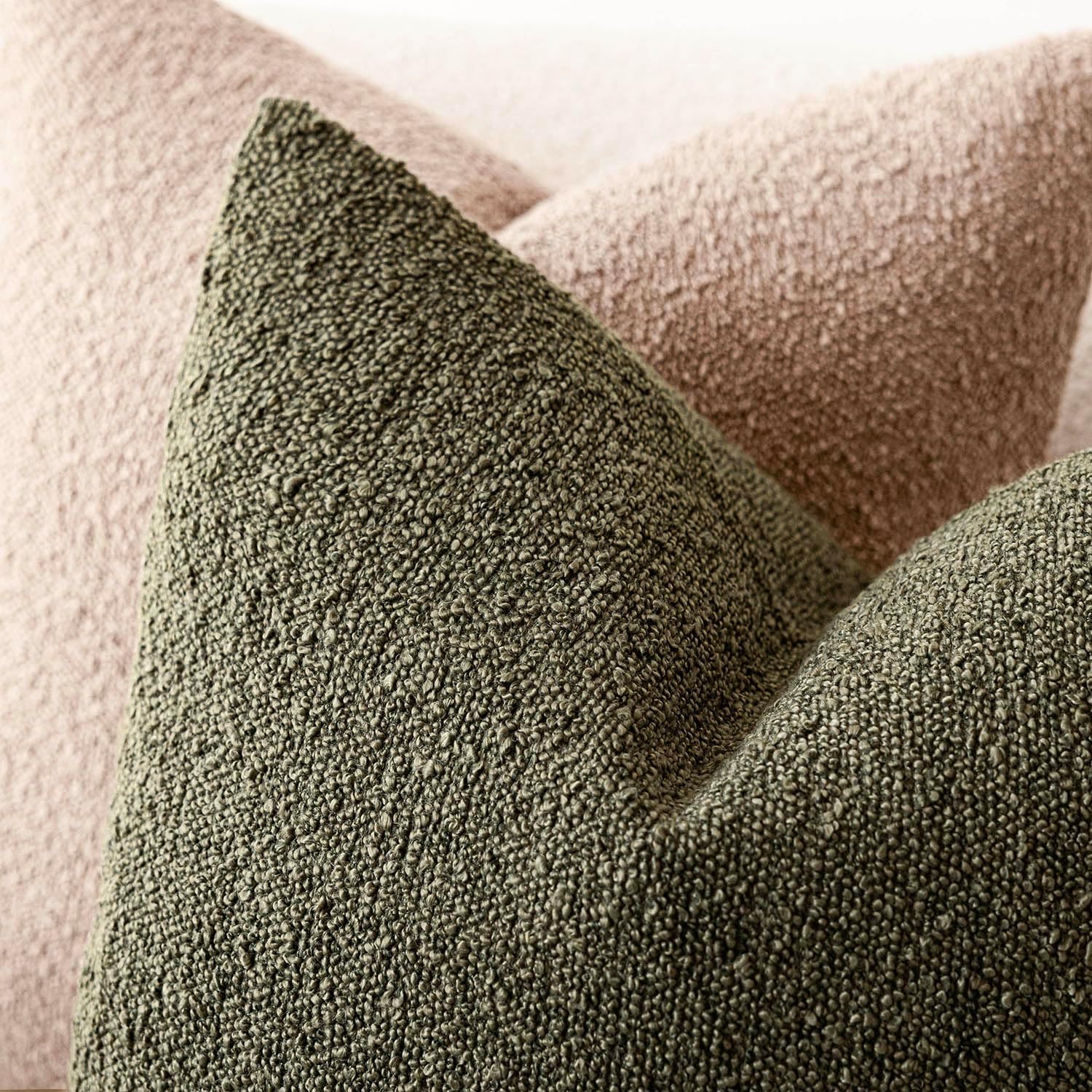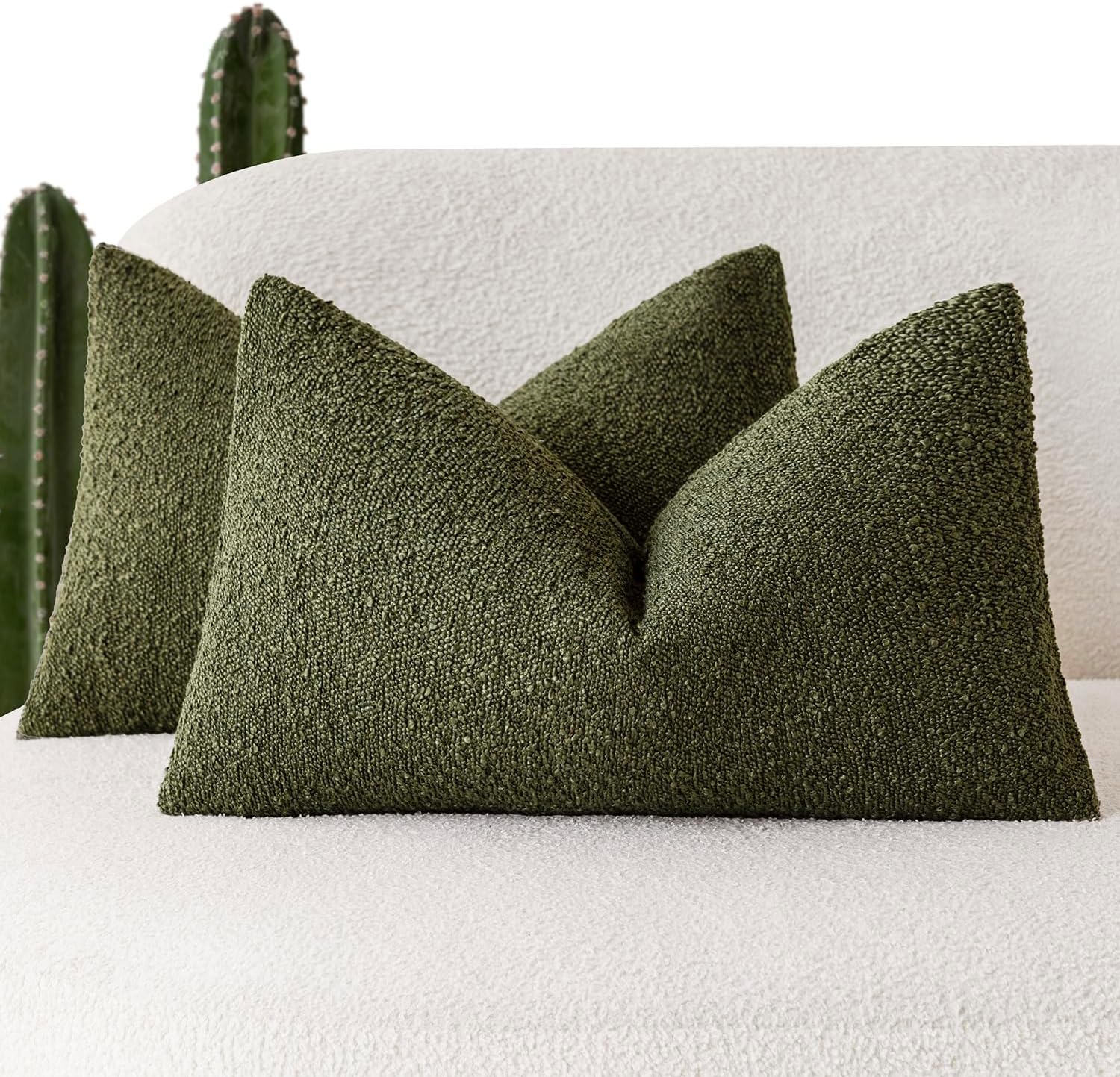 Foindtower Pack of 2 Textured Boucle Throw Pillow Covers Accent Solid Decorative Lumbar Pillow Cases Cozy Couch Cushion Case for Chair Sofa Bedroom Living Room Home Decor 12x20 Inch Moss Green
