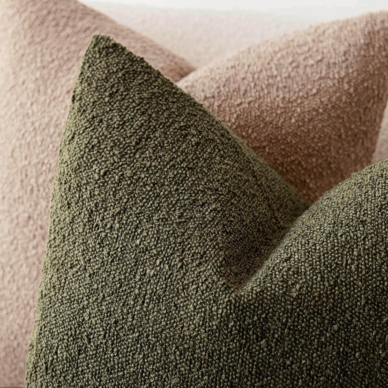 Foindtower Pack of 2 Modern Textured Boucle Throw Pillow Covers Accent Solid Decorative Pillow Cases Cozy Woven Couch Cushion Case for Chair Sofa Bedroom Living Room Home Decor 20x20 Inch Moss Green