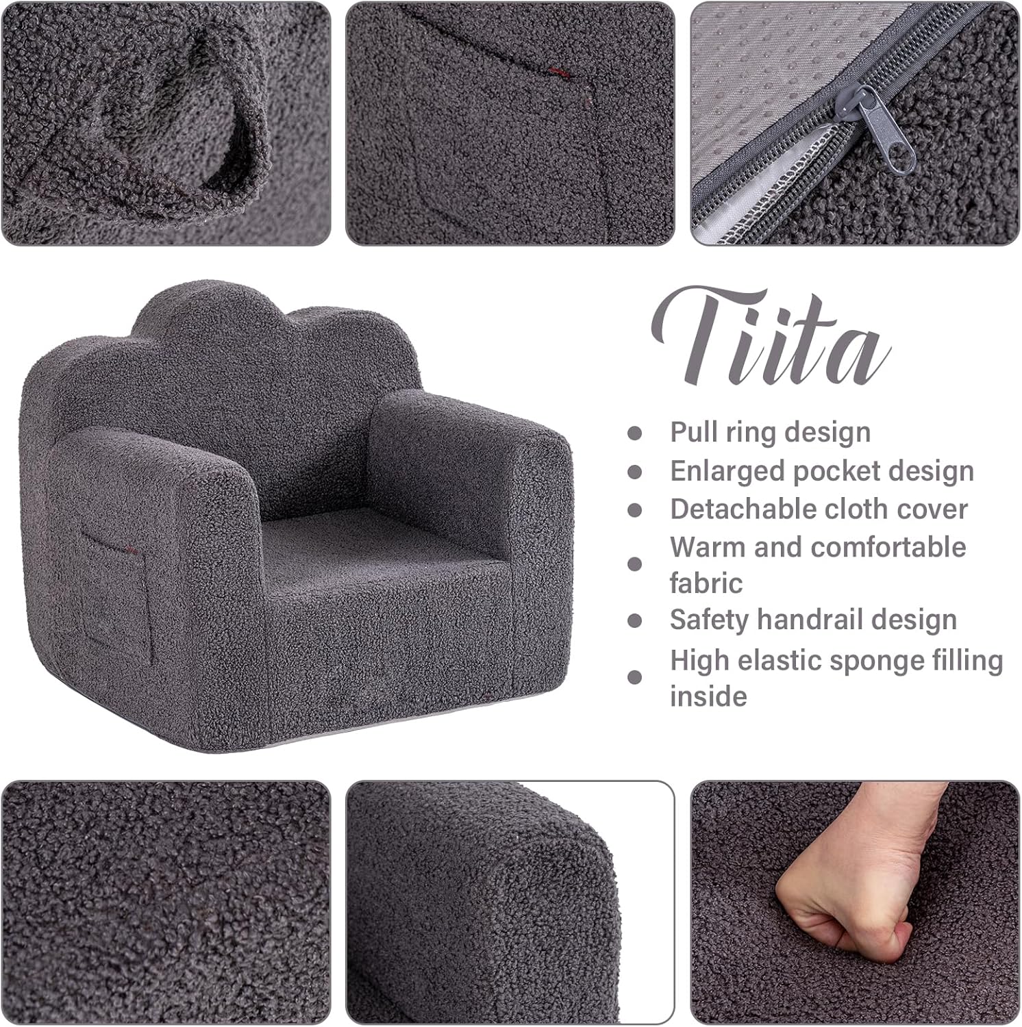 Tiita Kids Couch Plush Toddler Chair, Cloud-Like Glow in The Dark Kids Sofa Toddler Reading Chair with Washable Cover Carrying Handle, Convertible Children Sofa Chair for Girls and Boys
