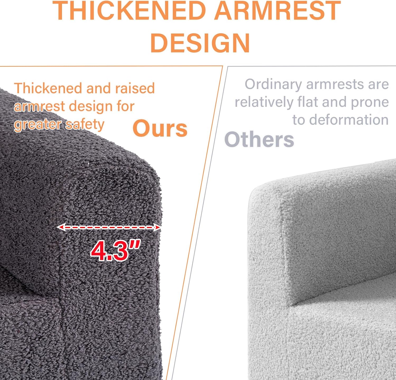 - 【Cloud-Like Back Support】This fluffy toddler chair is especially designed for little ones. Sitting in this fluffy toddler chair like snuggling a shining cloud. Toddler armchair cover is made of safe & skin-friendly durable cotton, we've utilized upgraded high-density sponge to enhance the durability and reliability of the kids chair, ensuring optimal protection for your child. So they will play games, eat snacks, watch TV, reading or just lie down and rest on the sofa.