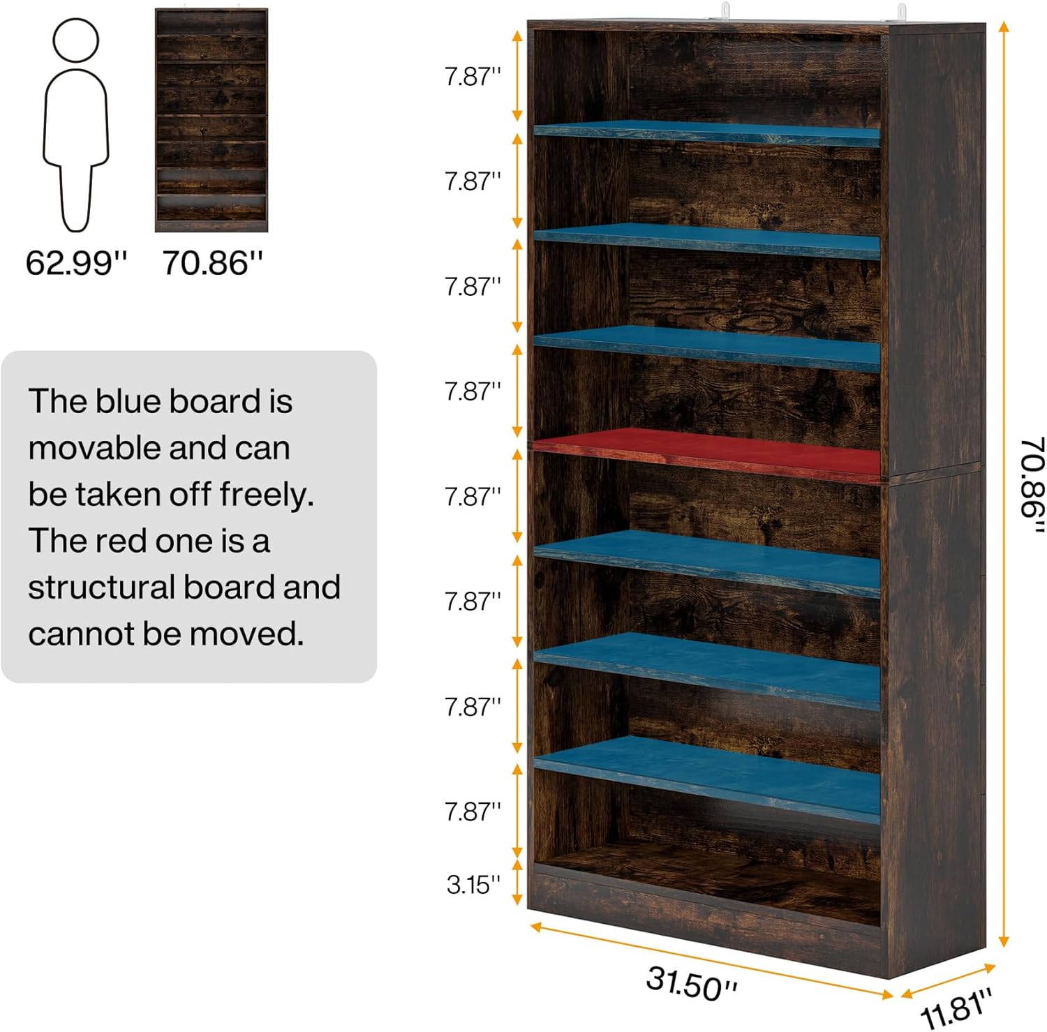 Tribesigns Tall Shoe Cabinet, 9 Tiers 40-45 Pairs Heavy Duty Wood Freestanding Shoe Storage Cabinet, 70.8'' Tall Shoe Cabinet with Open Storage for Entryway (Rustic Brown)