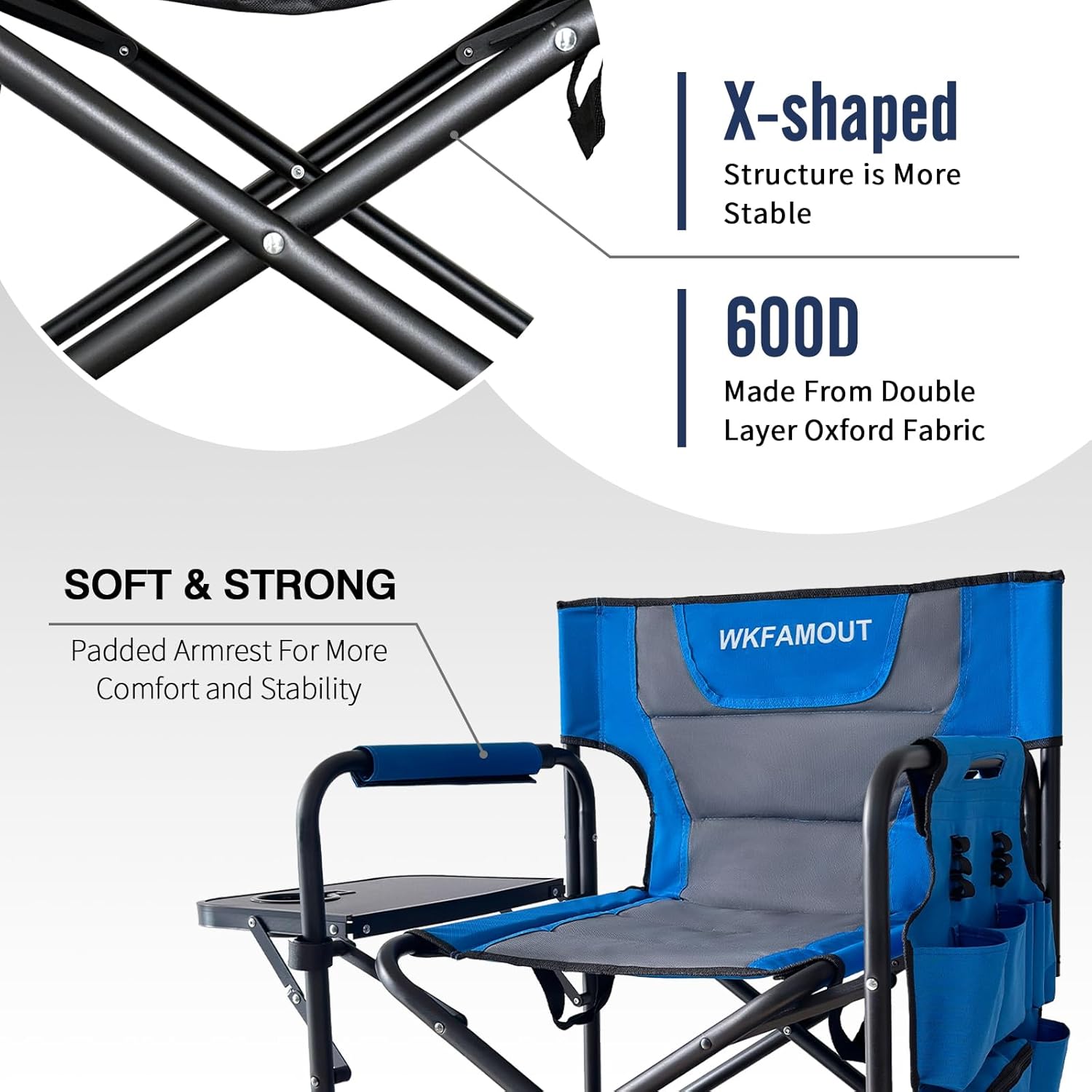 - Humanized Design: This director chair has side table and accessory pockets are attached to the side of the chair ,you can rest your drink, snacks, and phone secure and close.The directors chairs foldablem with mesh pockets give you extra storage space to carry more books and magazines.