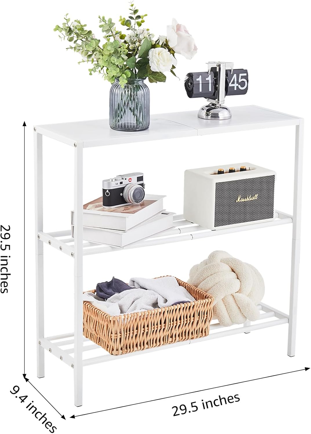 Wimarsbon 29.5" Narrow Console Table - 3-Tier Entryway Table with Shelves, Metal Frame, for Hallway, Living Room, Bedroom (White Frame White)