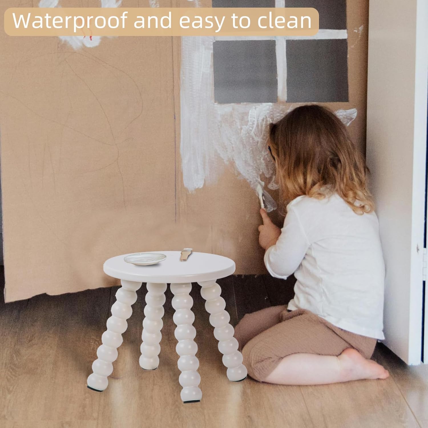 - [Safe Design & Easy Assembly] The step stool is designed with rounded shape to prevent accidental bumps and injuries while playing in the room. It also is easy to assemble just tighten the 4 legs, you can quickly install it in just a few minutes. The legs of the toddler stool are equipped with anti slip pads, which can prevent slipping and protect the floor.