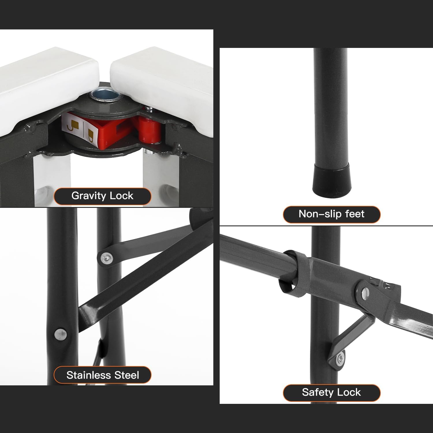 - 💕【Sturdy Support】 The Picnic Table with Powder-coated steel legs, the camping table frame joint locks, and non-slip rubber feet help to keep the plastic table in place during every event.