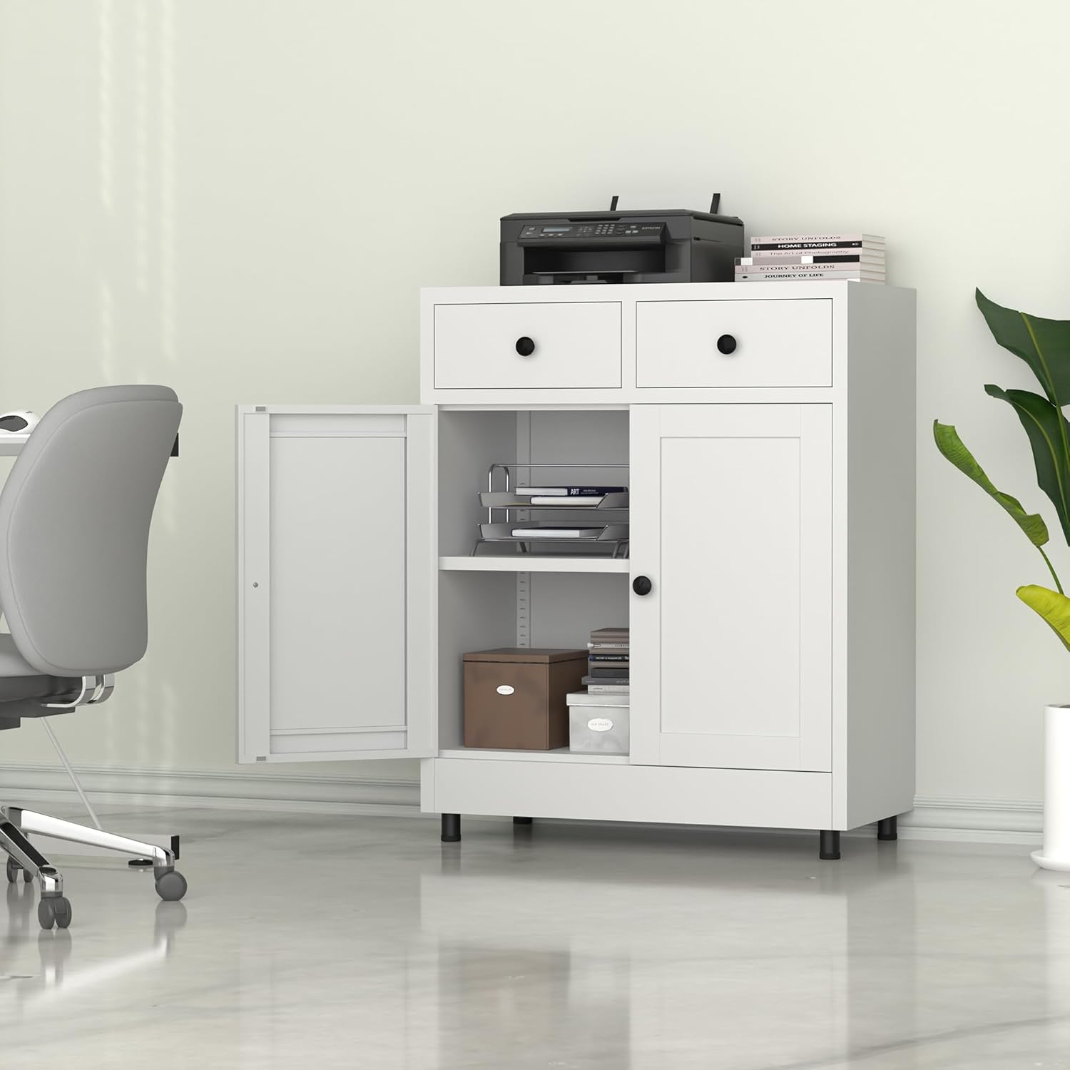 - VERSATILE FUNCTIONS - This storage cabinet offers you plenty of space for you to organize household items, office supplies and can food, it can be used in office, garage, living rooms, kitchen pantry, dining room, or anywhere in space needs to get de-cluttered