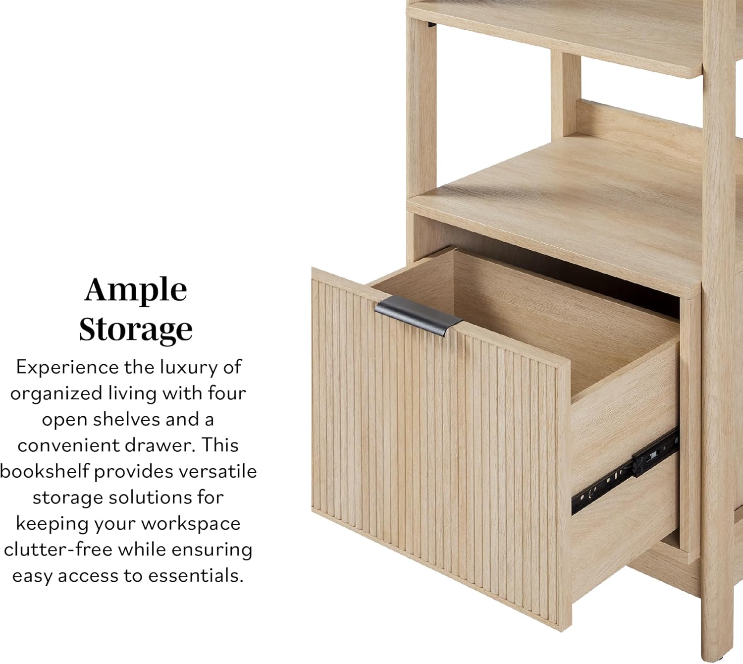- Plenty of storage: Enjoy conveniently ample storage with four shelves and a spacious bottom drawer perfect storing books, displaying mementos, or organizing office supplies