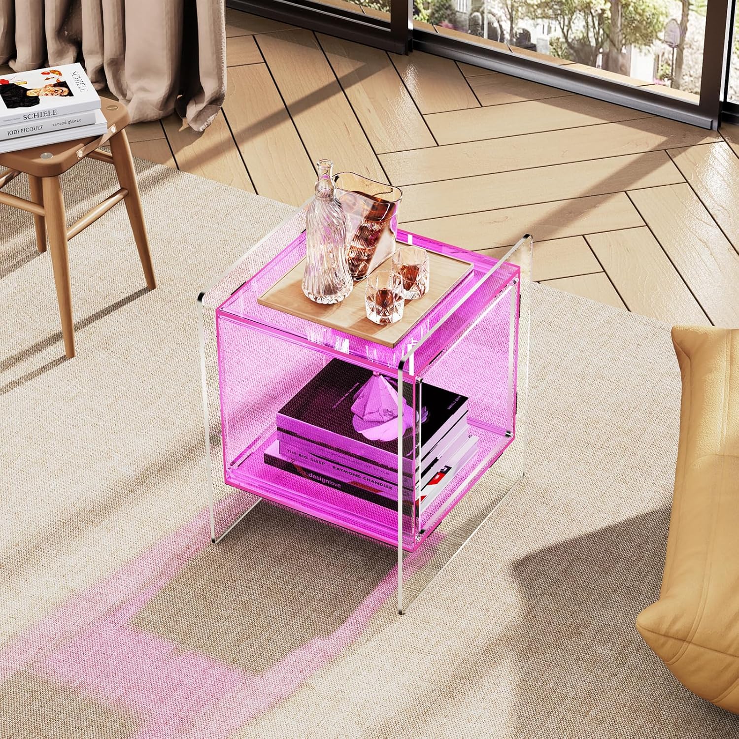 Acrylic Nightstand Colorful Bedside Table with Open Storage Shelf,Clear Side Table for Living Room (1, Pink)