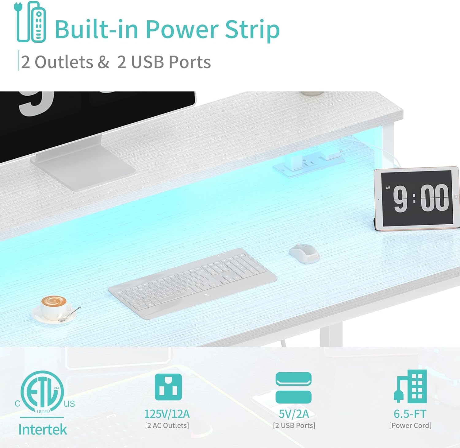 - Safety Multi-functional Power Strip: The computer desk includes a built-in power strip with 2 power outlets & 2 USB charging ports for your computer, monitor, gaming gear, pad, phone and other electronic devices.